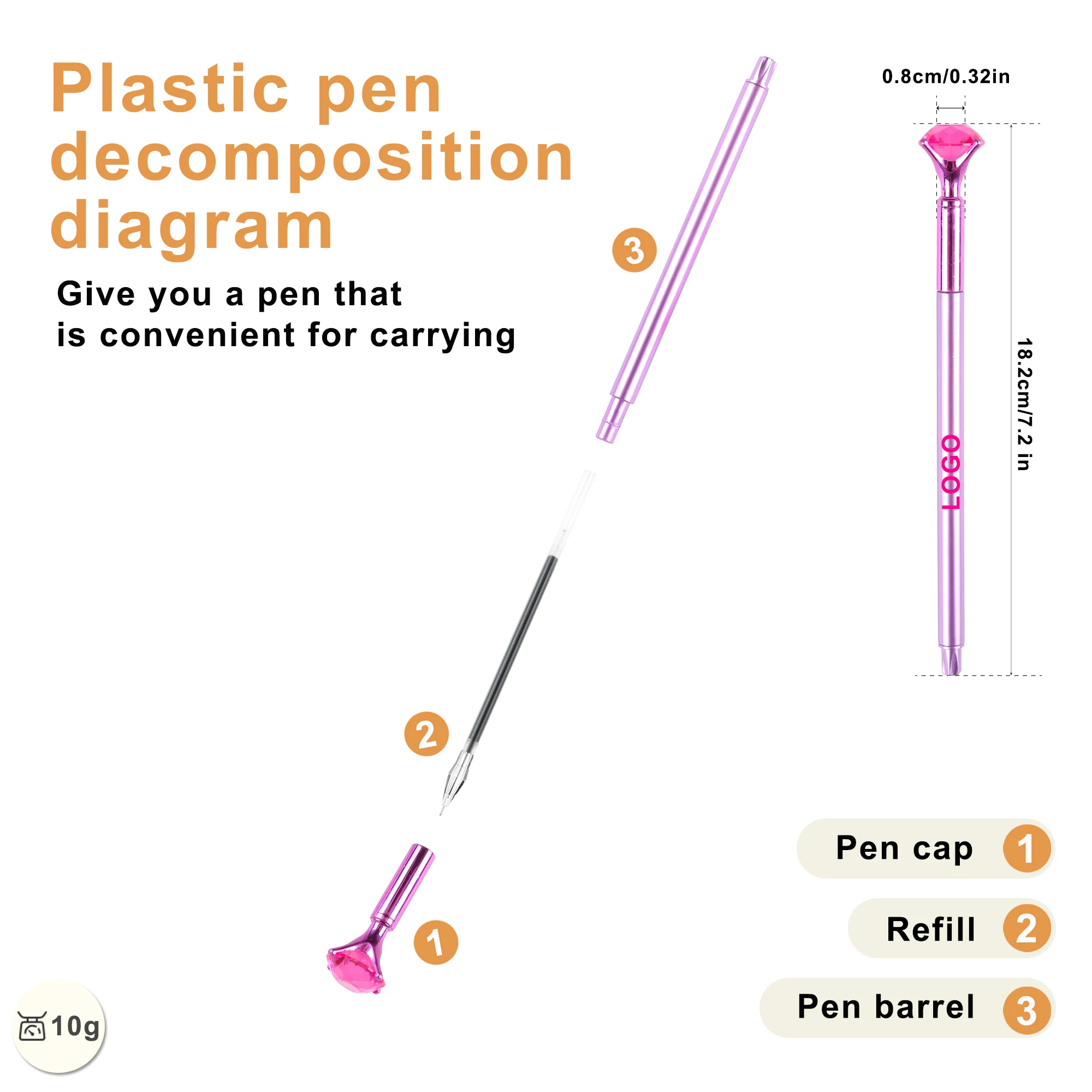 Customized Promotional Plastic Gel Ink Pen Big Diamond Crystal Bluk 1.0mm Refills Custom Printing Logo Personal Pens Office Gift