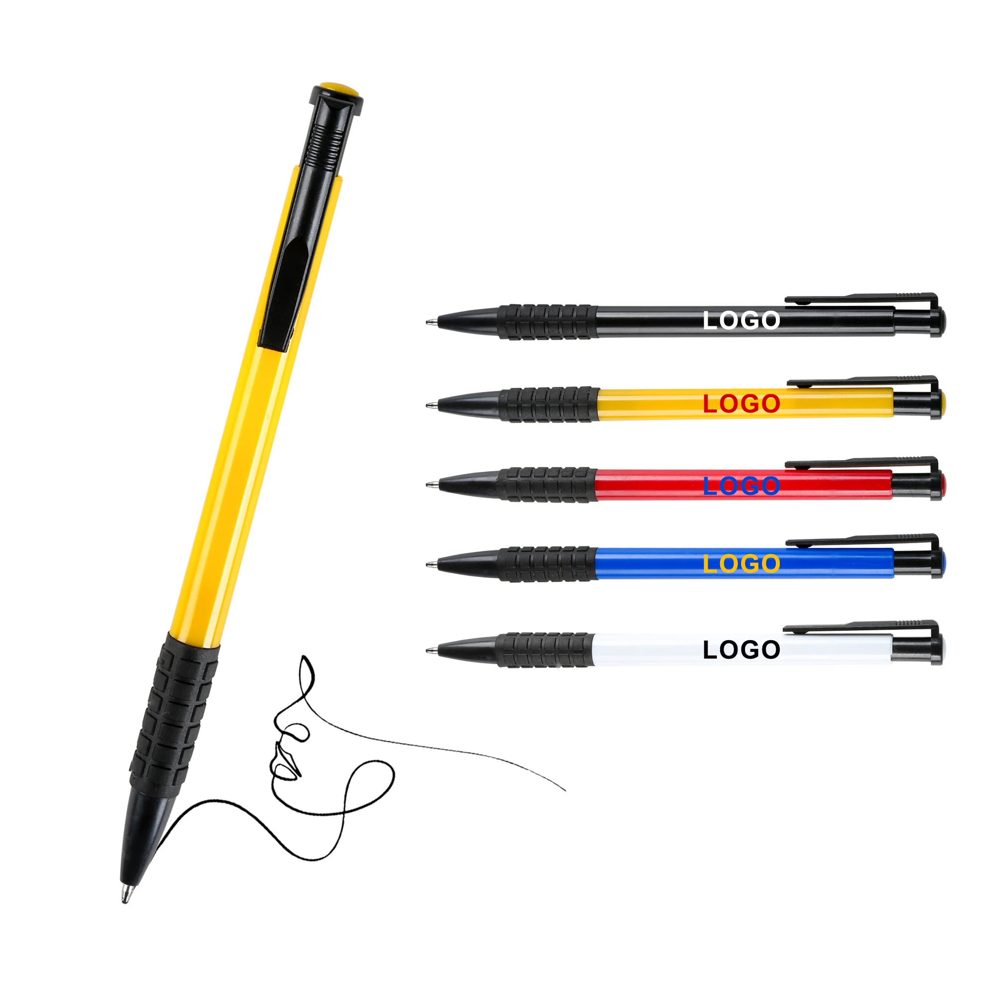 Promotional Business Brand ABS Plastic Retractable Ballpoint Pen with Soft Grip Slim Custom Printed Logo Advertising Branded