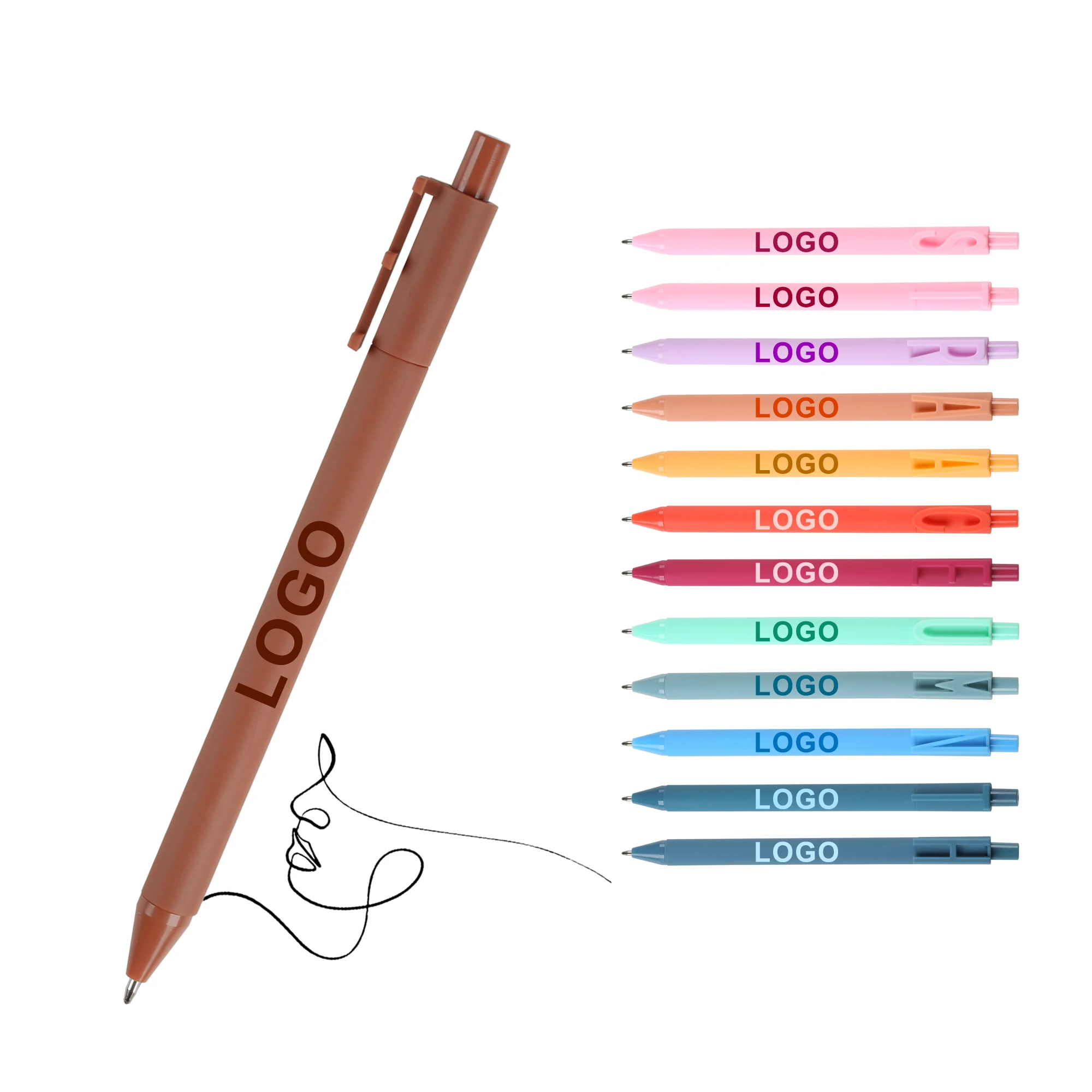 Promotional Bulk Plastic Multi-color Retractable Rubber Ballpoint Pen with Customized Logo Printed Advertising Ball Point Gift