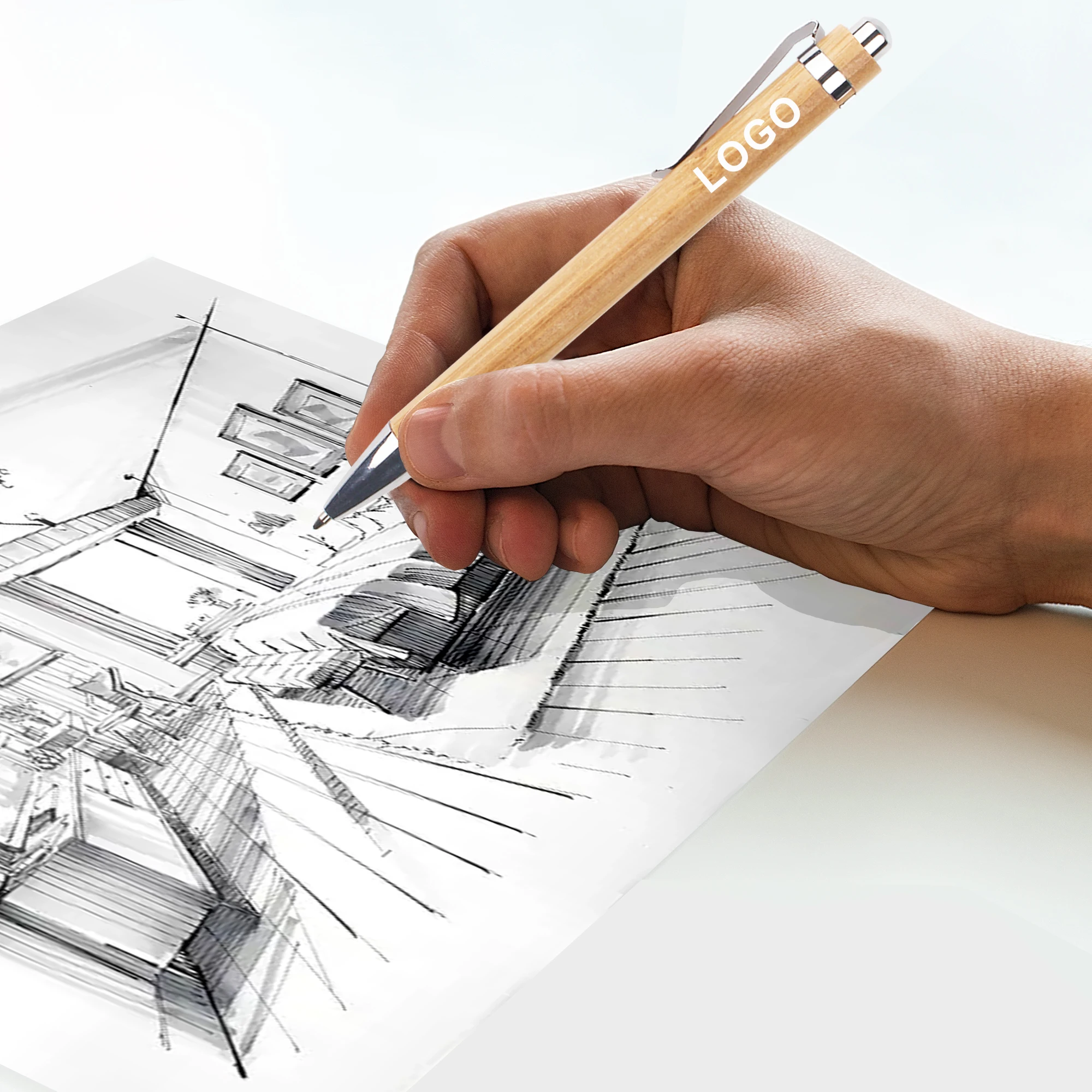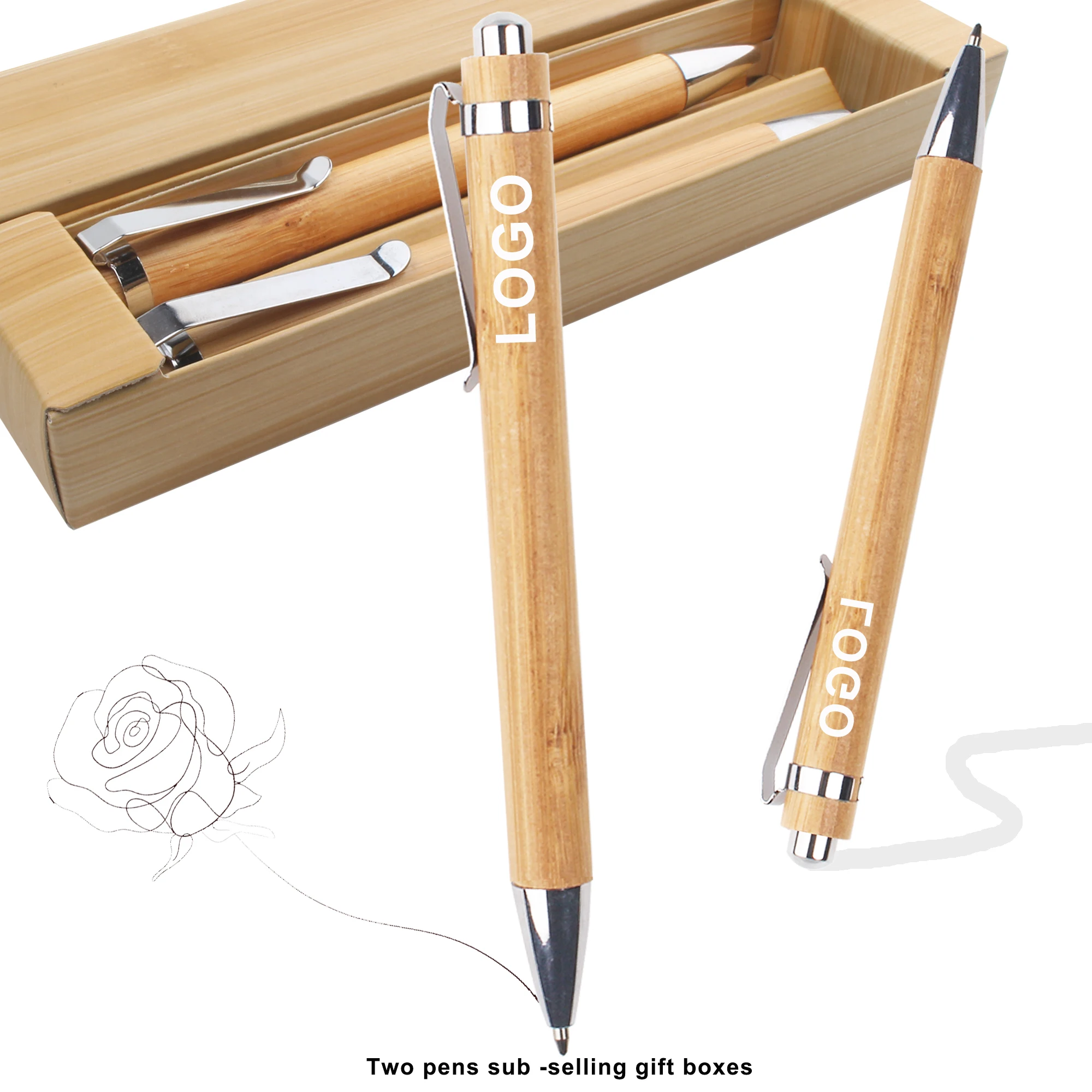 Selling Bulk Press Environmental Bamboo Ballpoint Pen With Printed Customized Logo for Stylo Office Stationery