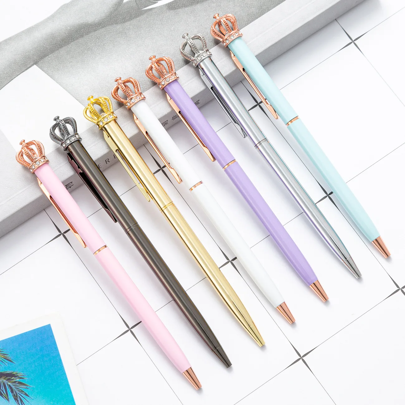 Supply New Creative Cute Crown Metal Ballpoint Pen With Spinning Print Logo Custom Laser Engraved for Stationery Office