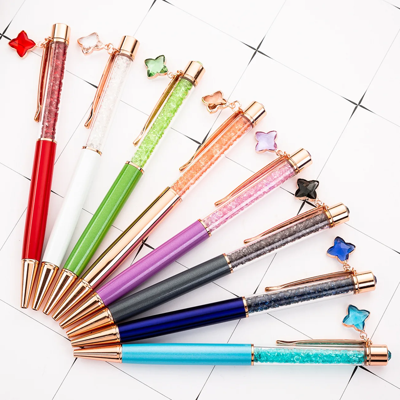 Bulk Cheapest Manufacturers Crystal Metal Ballpoint Pen With Four-Leaf Clover Pendant Custom Logo for Gift