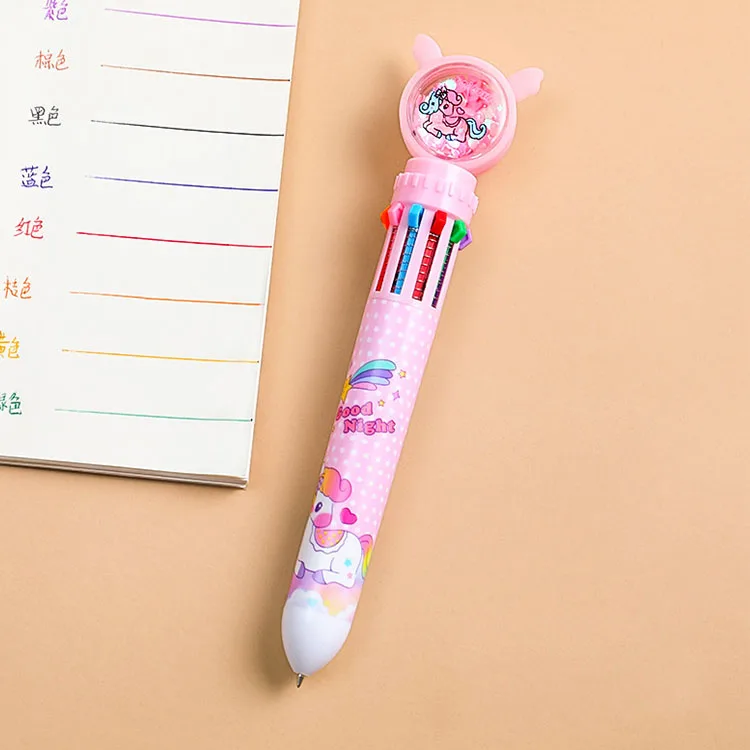 Hot Selling Bulk 10 in 1 Lovely Sequin Press Plastic Ballpoint Pen With Multi-Color Customized Logo for Office Learn Statiory