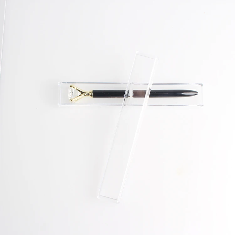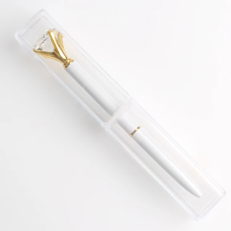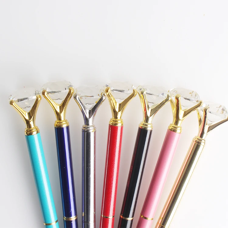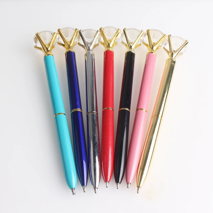 Promotion OEM Multi Color Diamond Pen in Transparent Case With Topper Big Crystal Rhinestone Round Gold Metal Ball Point Writing