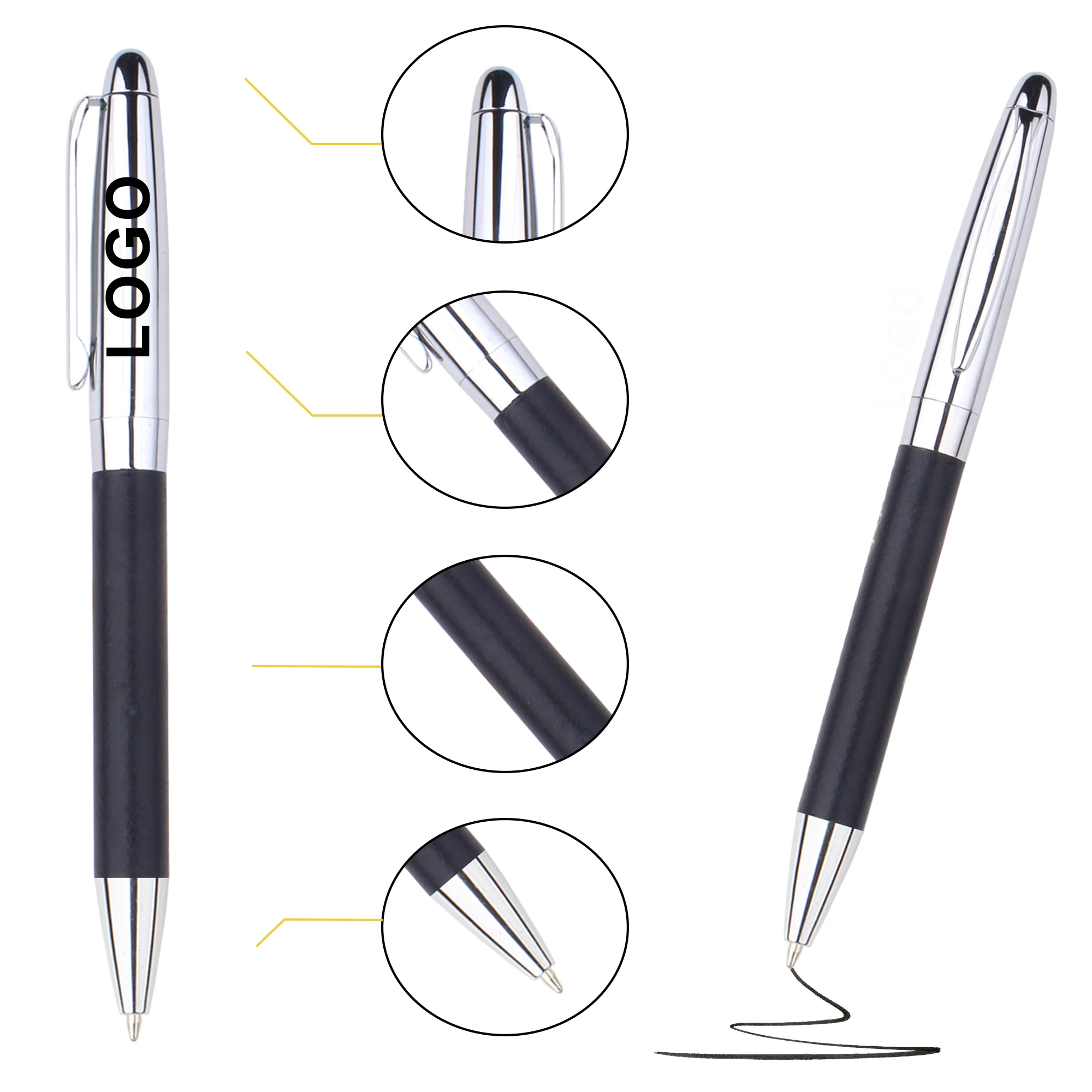 Best Selling Novelty Design Custom Logo Twist Metal PU Leather Ballpoint Pen With Printed Business Advertising 1.00 MM Writing