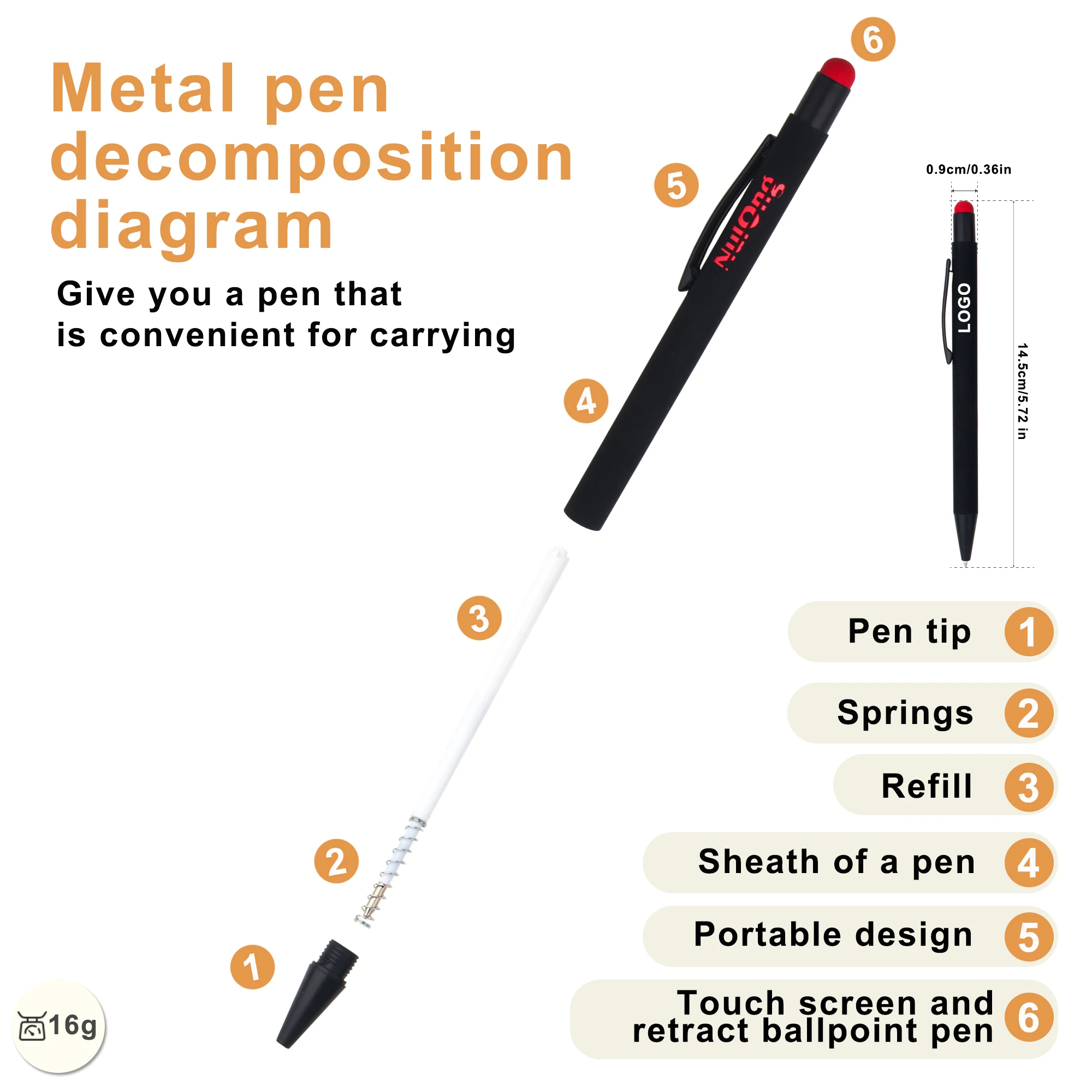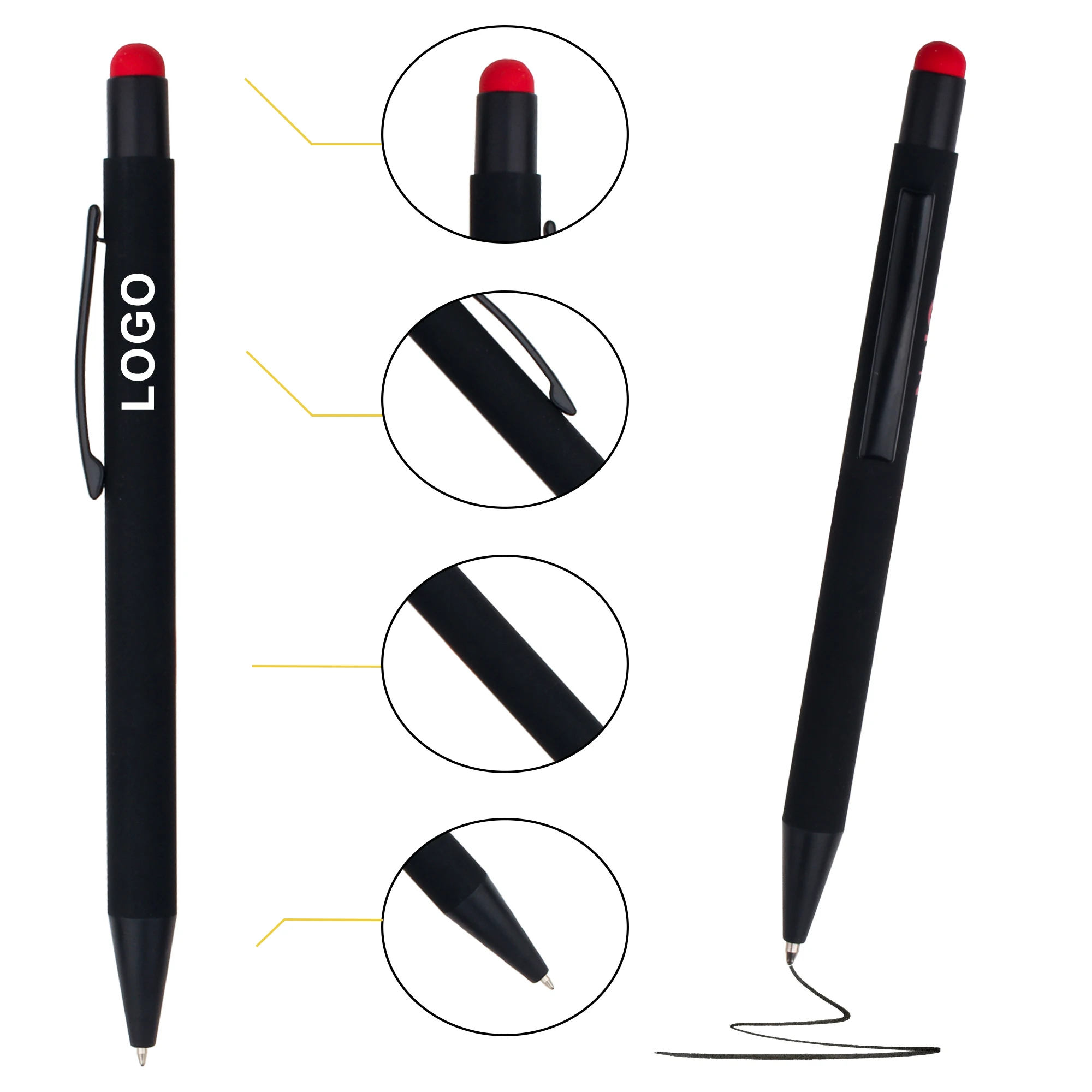 Novelty Promotion Black 2 in 1 Stylus Soft Rubber Aluminum Business Metal Ballpoint Pen Printable Logo With Custom Advertising