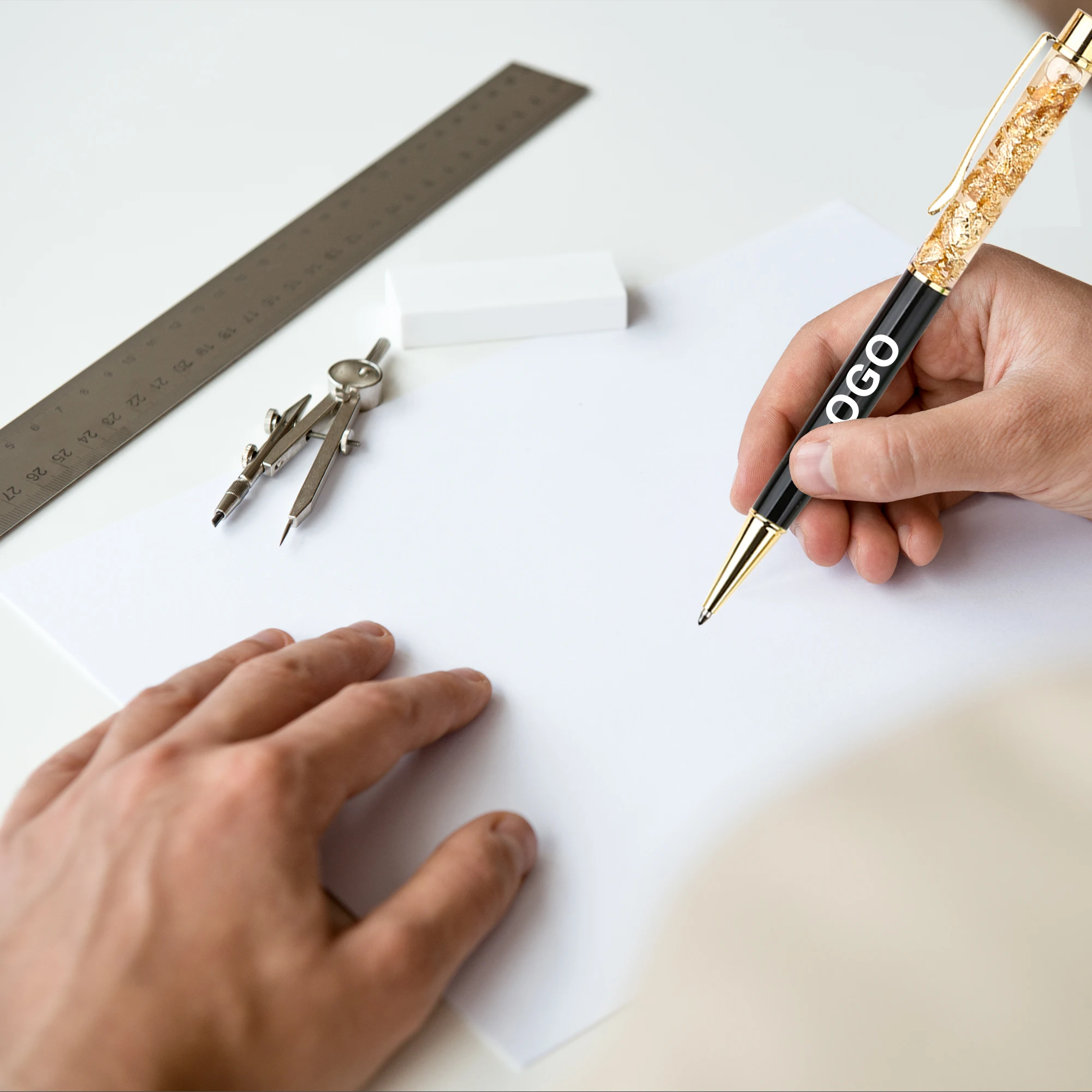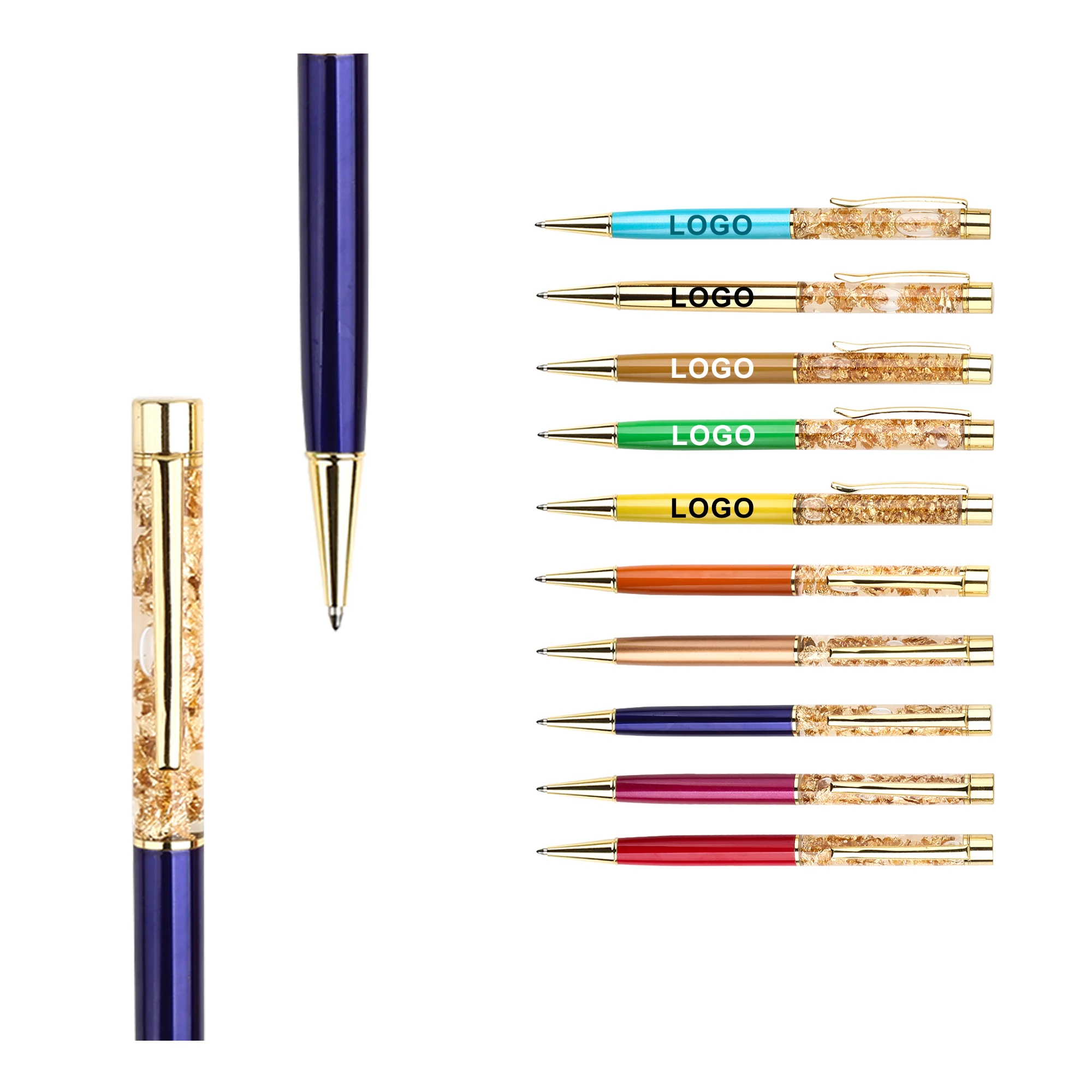 Gold Foil Floating Golden Flakes Rotating Ballpoint Pen With 1.0 mm Writing Custom Logo Printed for Novelty Gifts