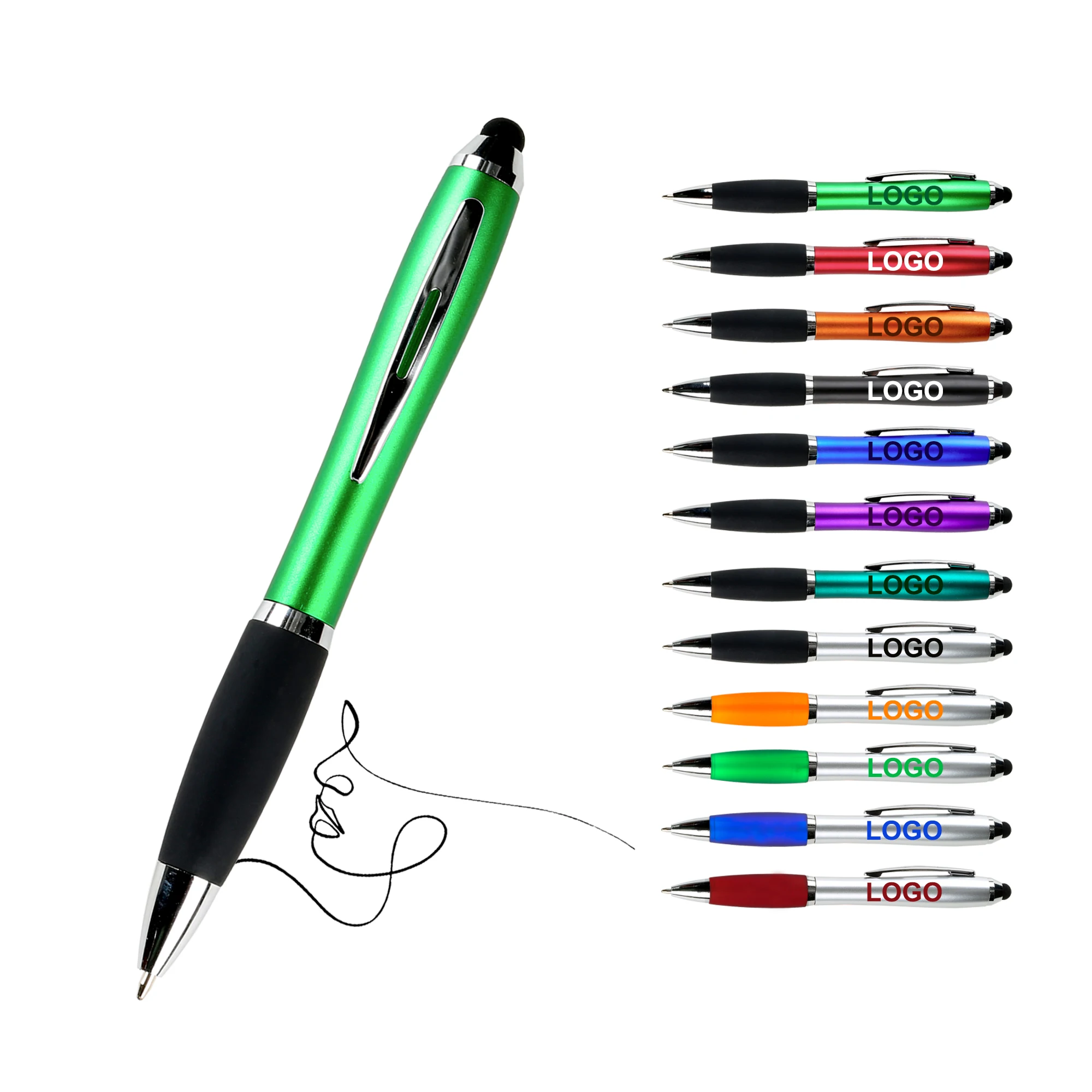 Promotional Cheapest Mulit-color 2-in -1 Rotate Plastic Ballpoint Pen with Soft Touch Screen Mobile Phone Custom Logo Printing