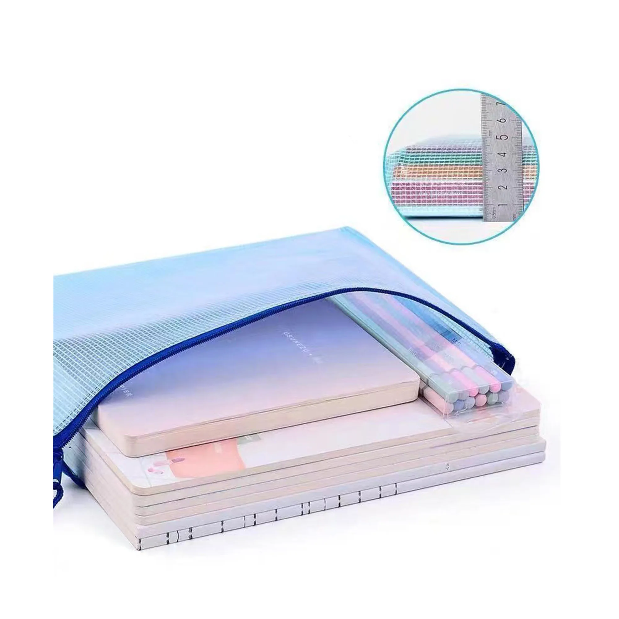 Customizable A4 Double Layer Mesh Zipper Organizer Durable Transparent Color Waterproof Effect Document Bag With Logo Printing