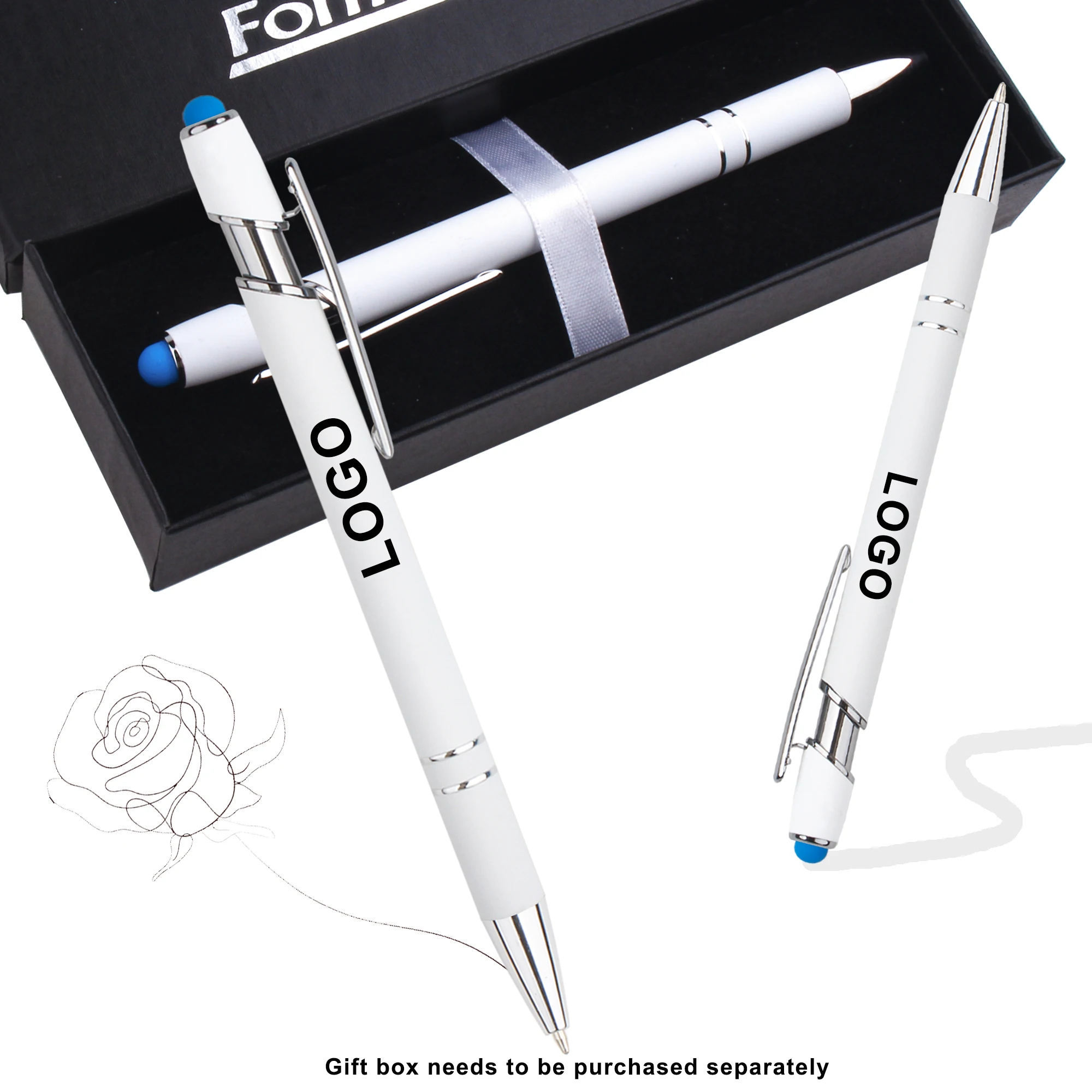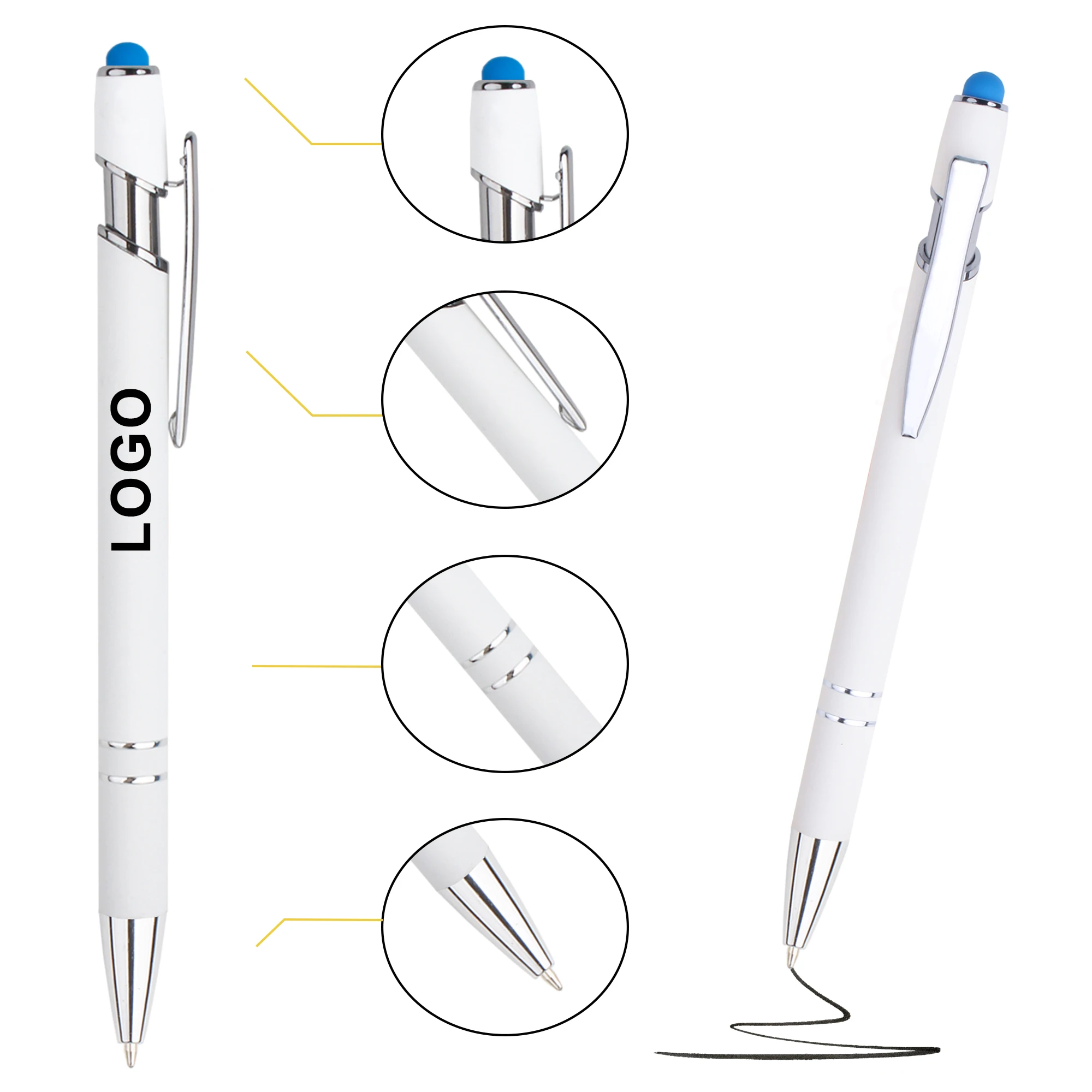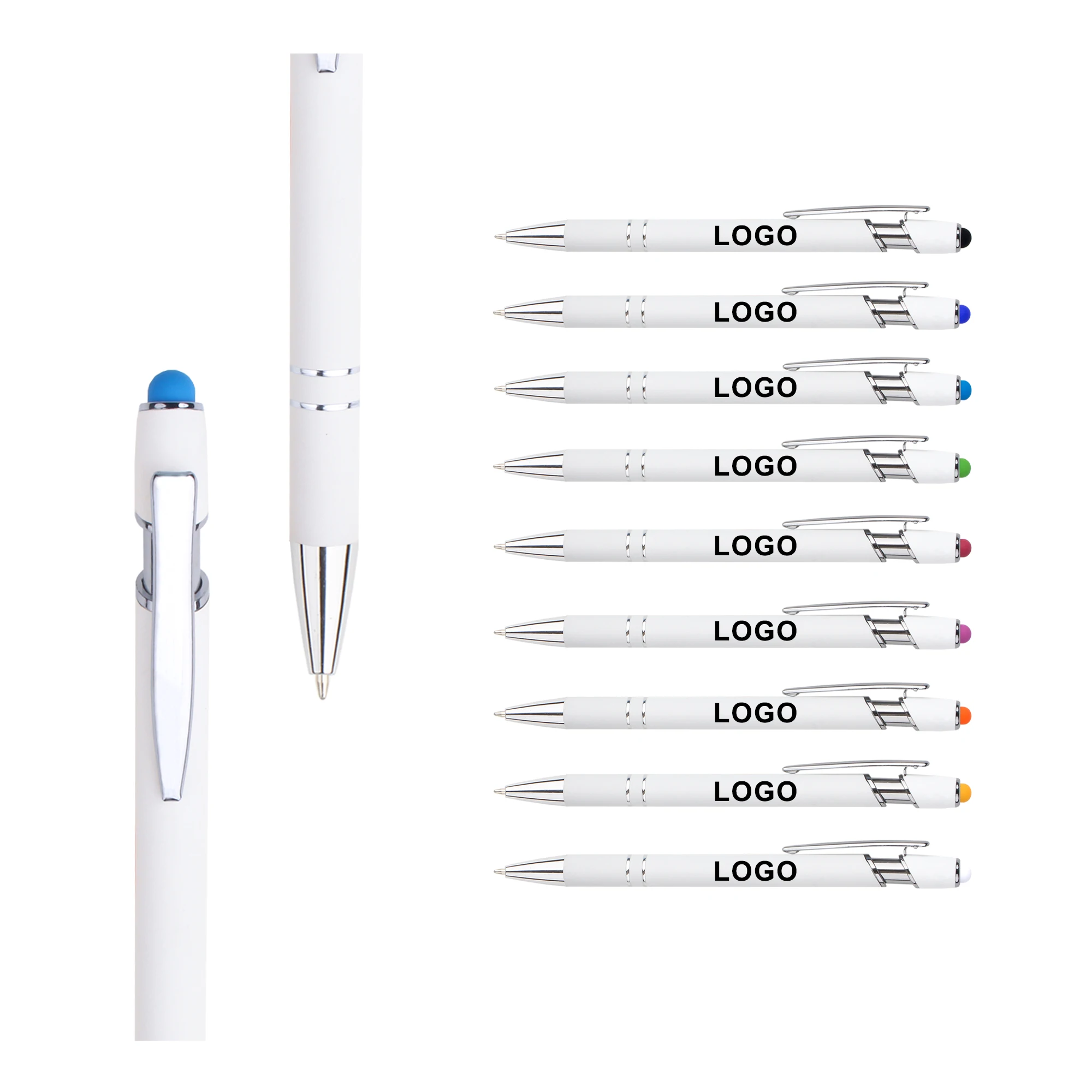 Promotion White Touch Stylus Business Luxury Metal Aluminum Ballpoint Pens with Retractable Soft Rubber Custom Printing Logo