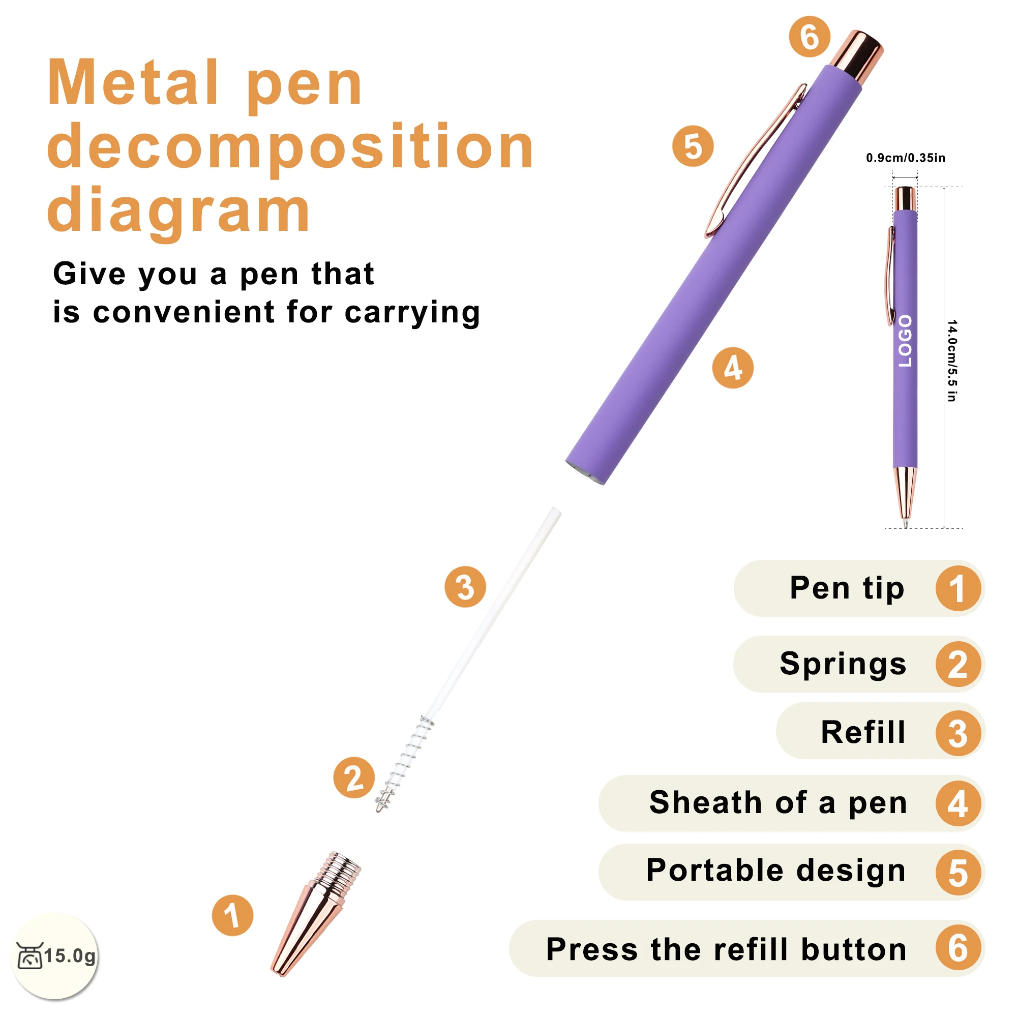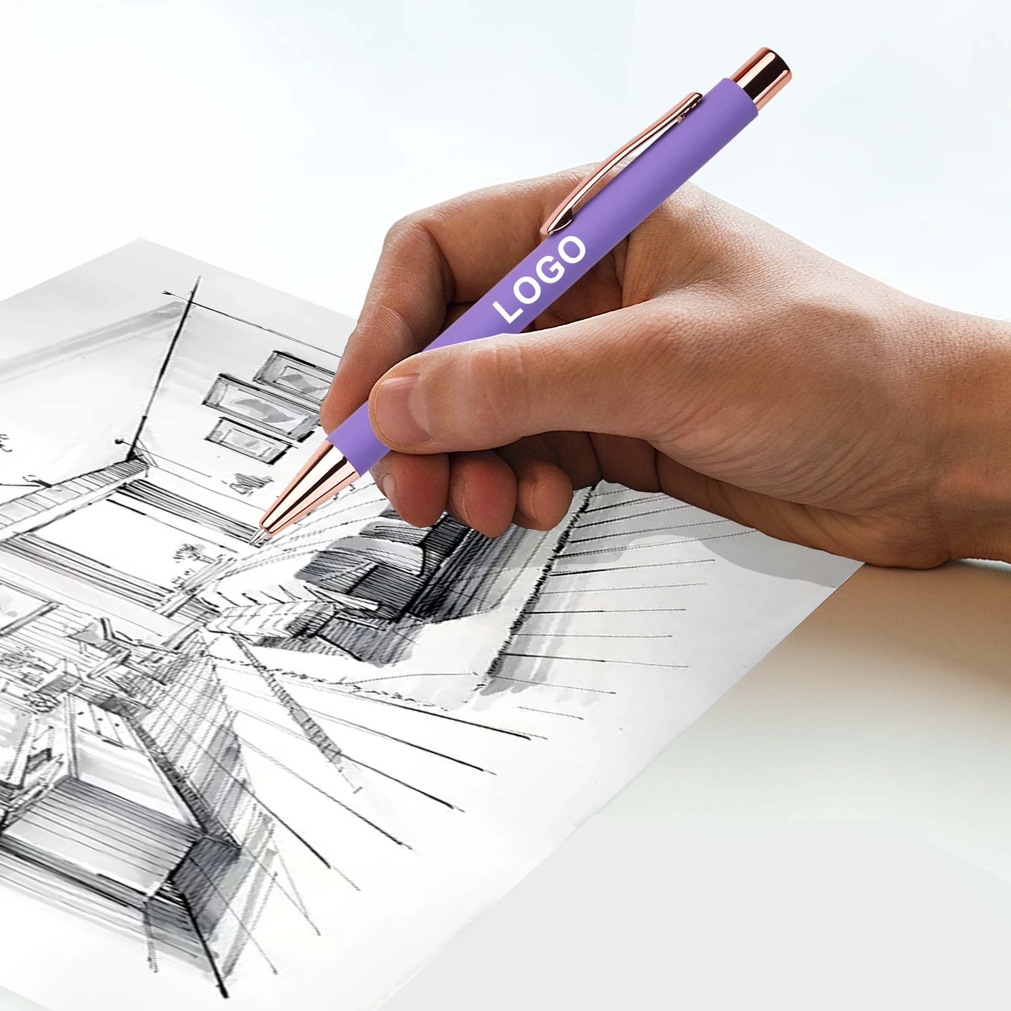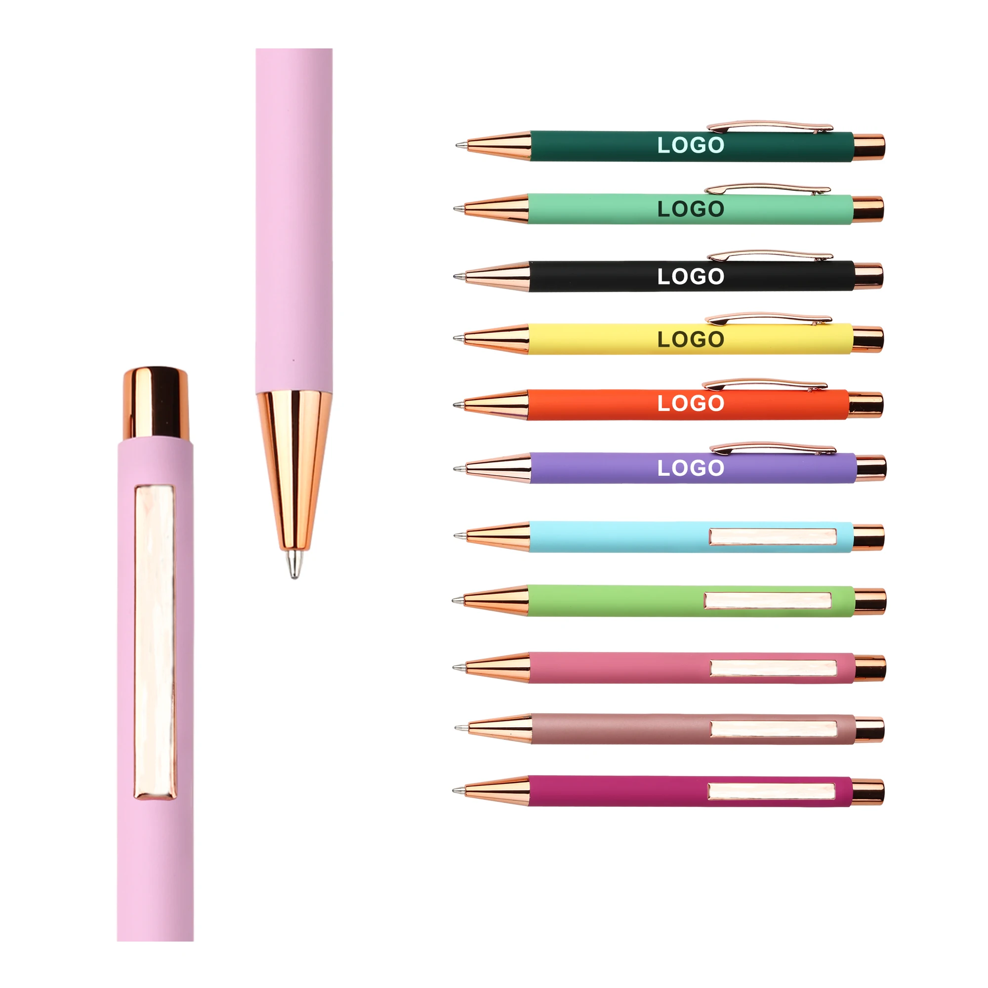 New Novelty Custom Logo Rose Gold Metal Aluminum Ballpoint Pen With Press Rubber Matte Business Printed Personal for Stationery