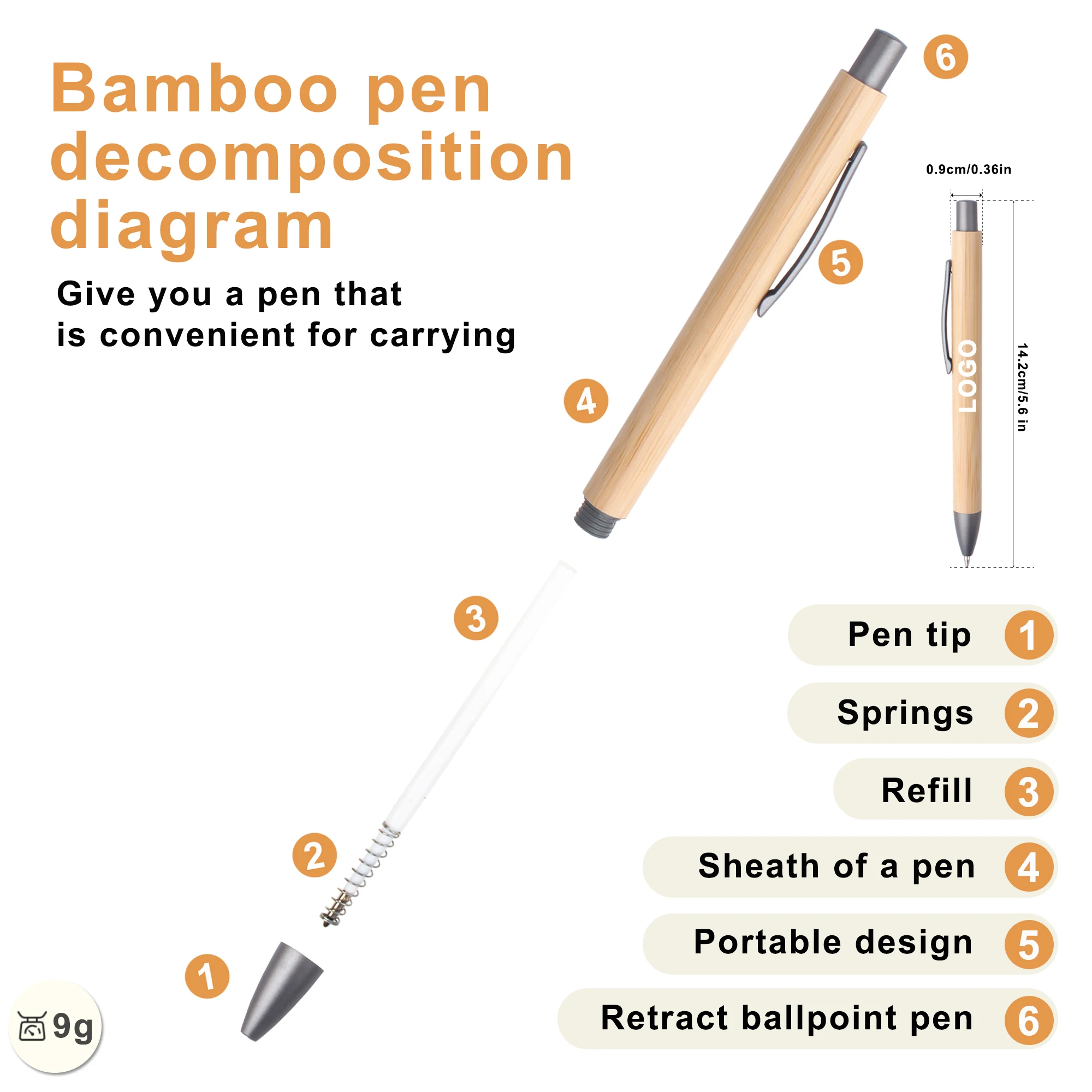 2026 Wholesale Eco-friendly Natural Recycled Click Bamboo Wood Ballpoint Pen With Custom Logo Printed Laser Engraved Manufacture