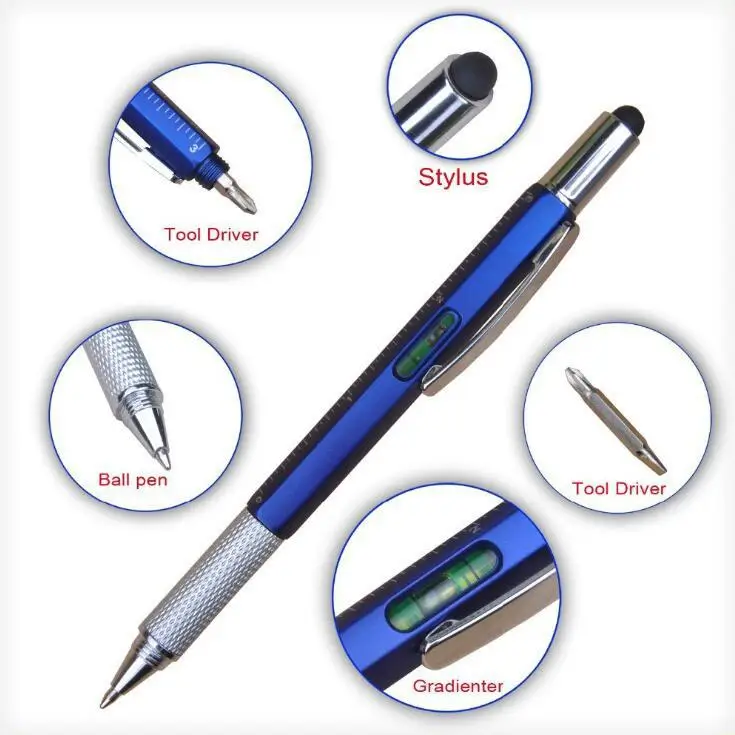 Hot-selling Multi Functional Tool Plastic Ballpoint Pen With Six-In-One Stylus Screen Custom Logo for Gift