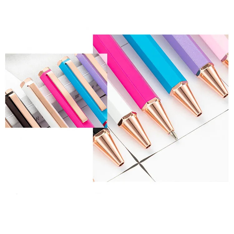 Bulk Novelty Hexagonal Metal Multi-Color Ballpoint Pen With Laser Printed Logo Custom for Signature Office Gift
