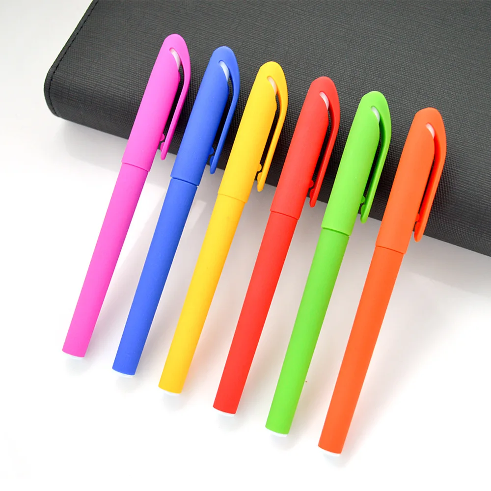 Wholesale Spray Multi-color Plastic Gel Pen With Refill Ink 0.5MM Black or Blue Printed Custom Logo for Stationery