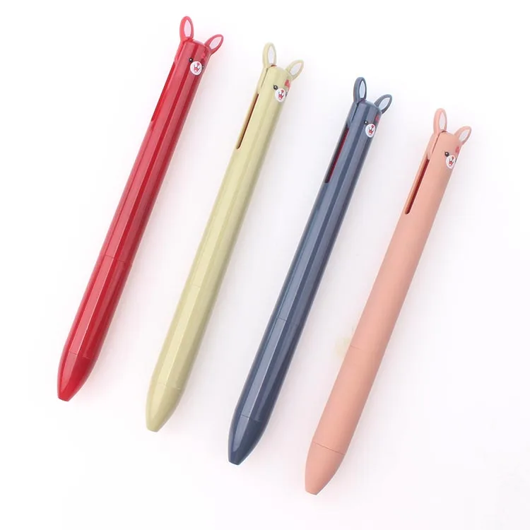 Wholesale Cute Black Red Ink Ball Pen With Lovely Rabbit Head Custom Logo Advertising for Novelty Girls Stationery Office