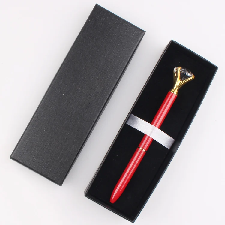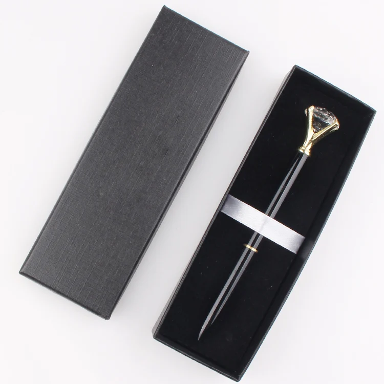 Promotional Gravel Metal Sparkling Big Diamond Pen Set With Head Crystal Cute Engraving Ink Stationery Gift Box Ballpoint