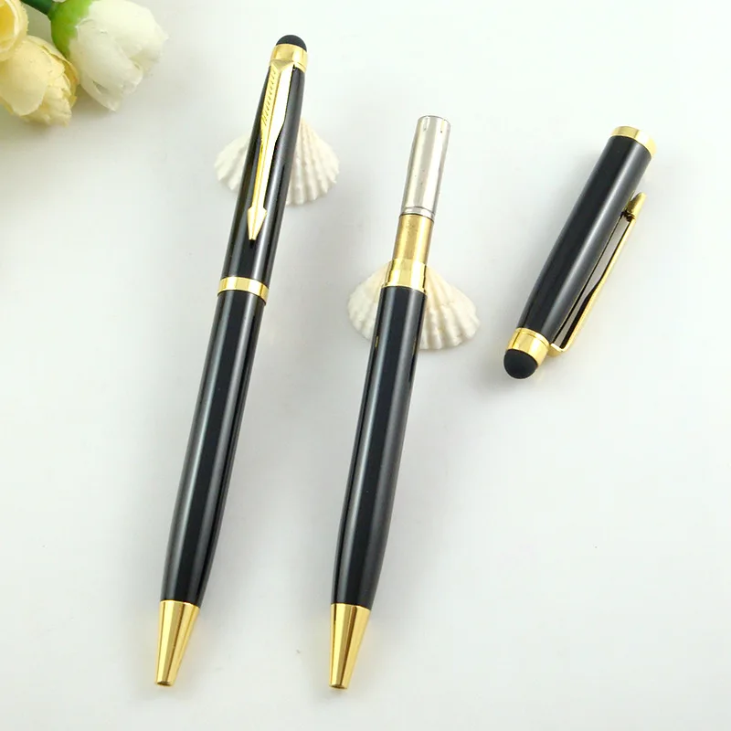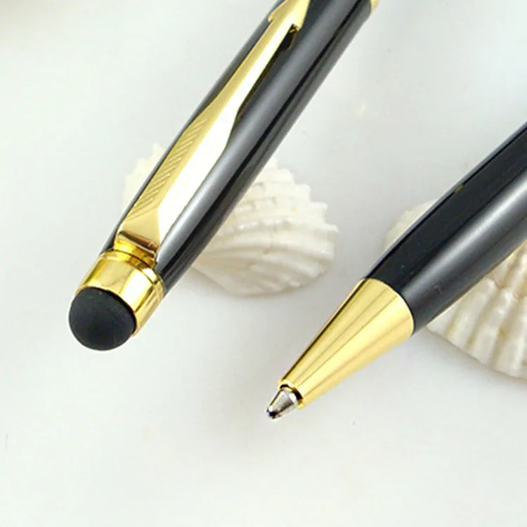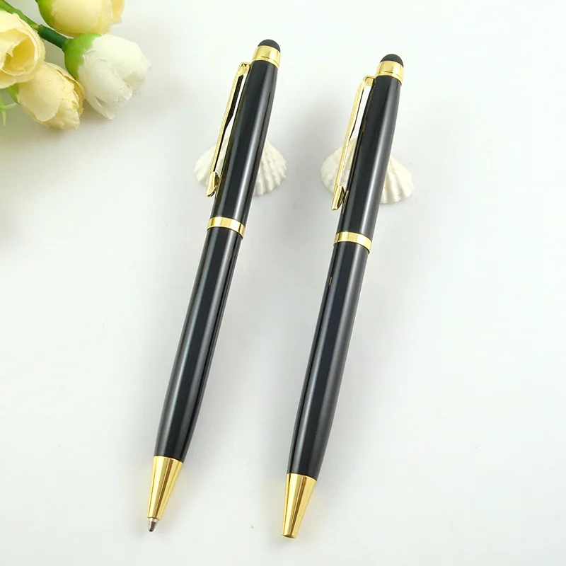 Wholesale 2-in-1 Stylus Screen Slim Twist Black Metal Ballpoint Pen With Laser Customized Logo Printing for Hotel Stationery