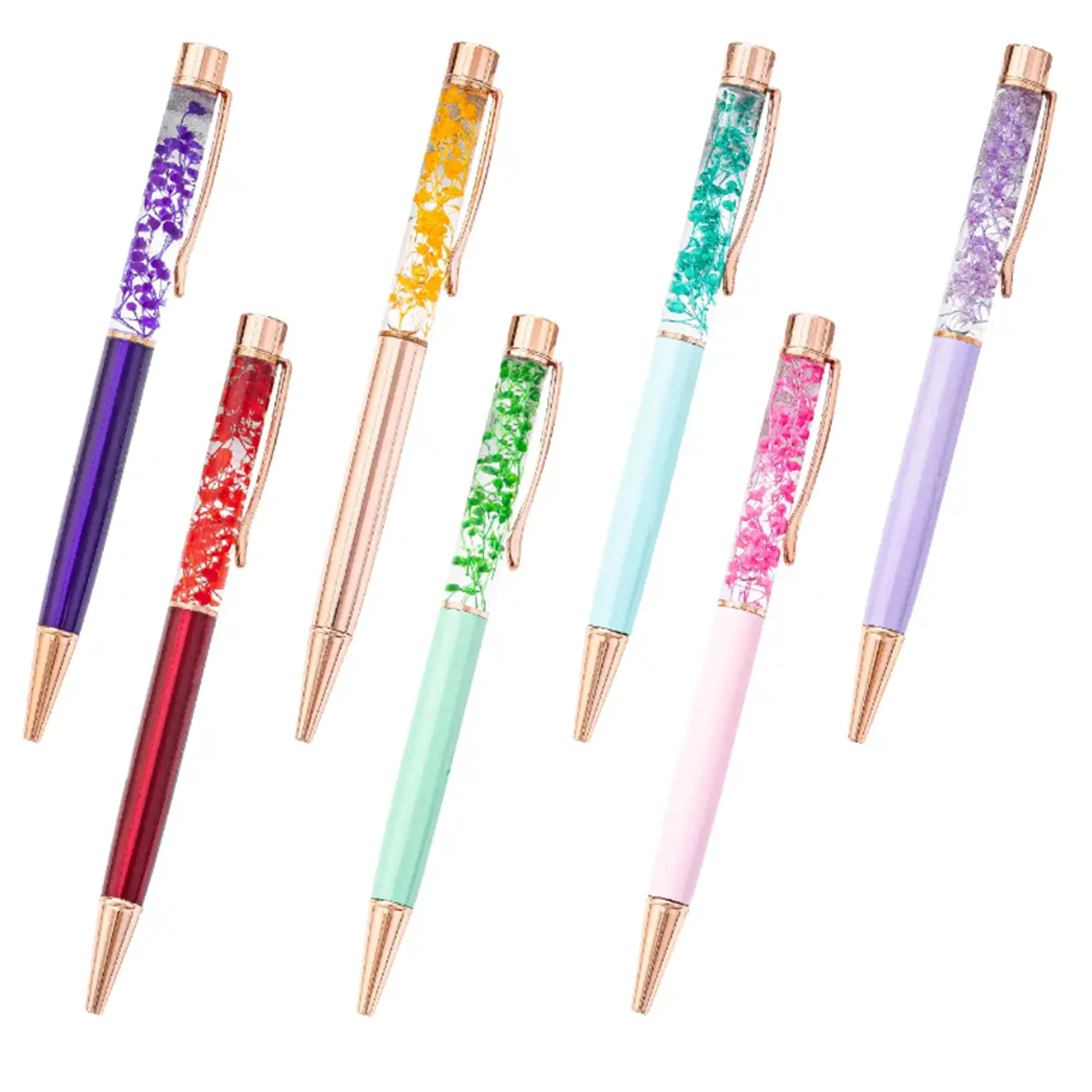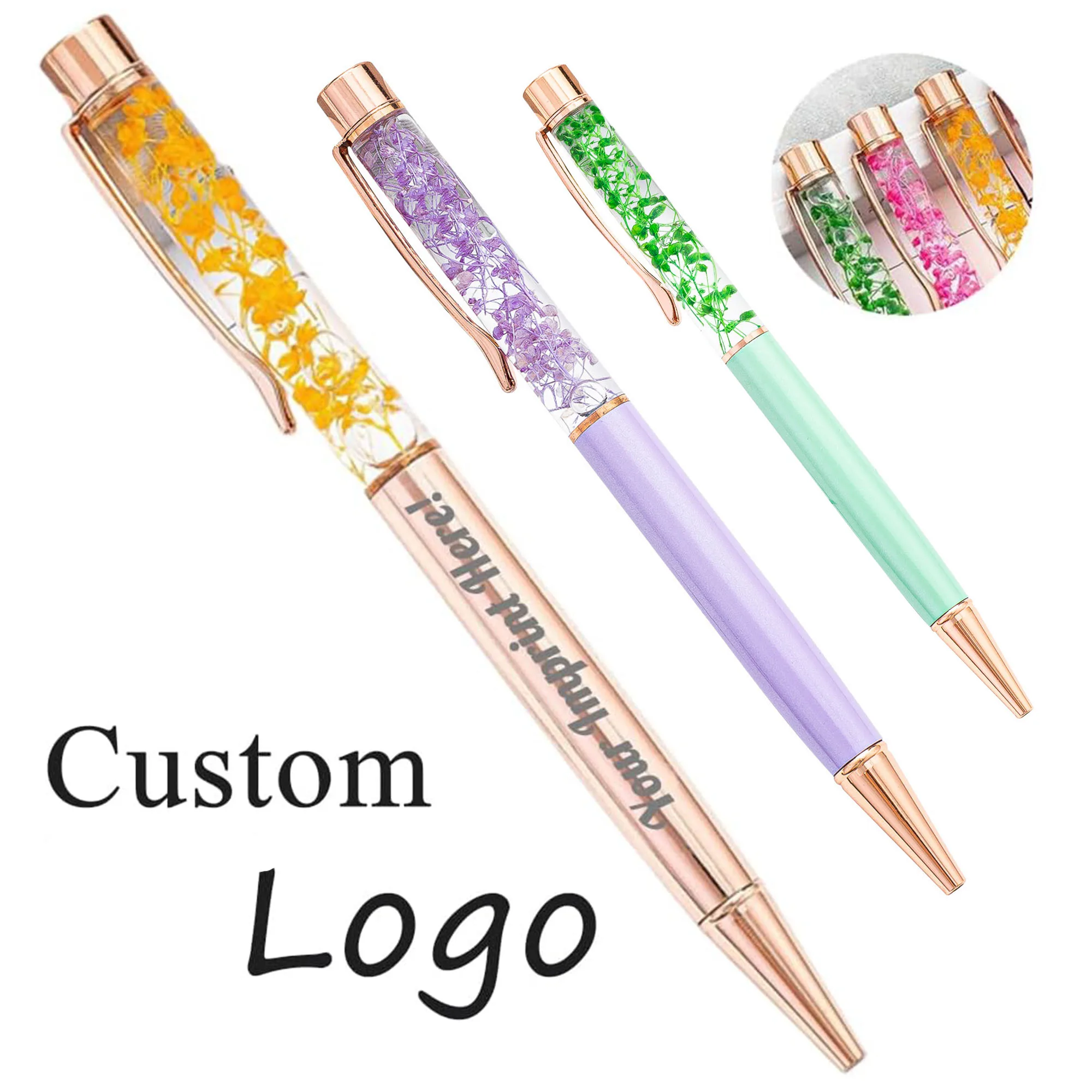 Custom Printed Logo Engraved Creative DIY Dry Flower Metal Ballpoint Pen Bulk Wholesales Advertisement for Personalized Gift