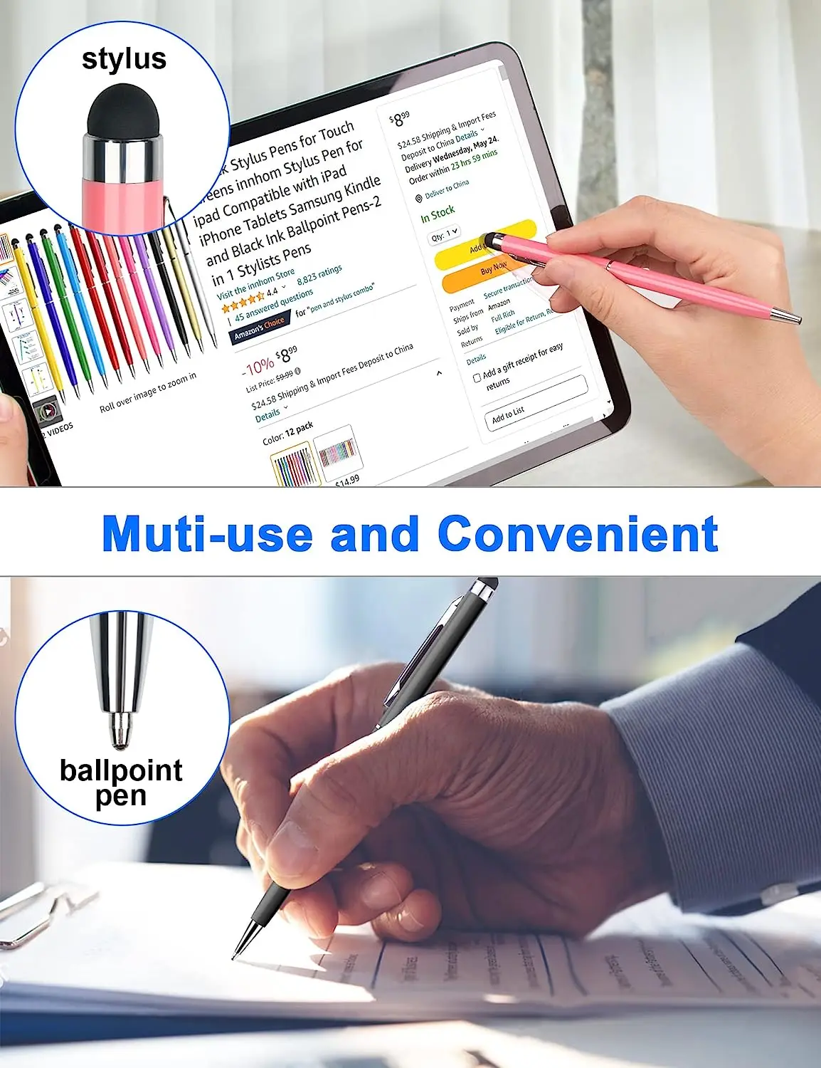Cheapest 2 in 1 Smart Slim Plastic Ballpoint Pen Spinning Multi-color Wholesale Custom Logo Printed Stylus for Tablet