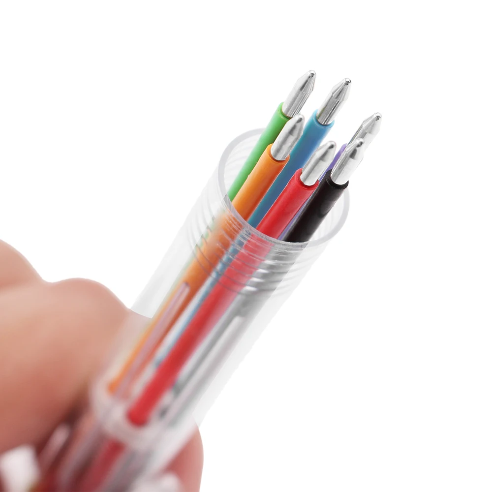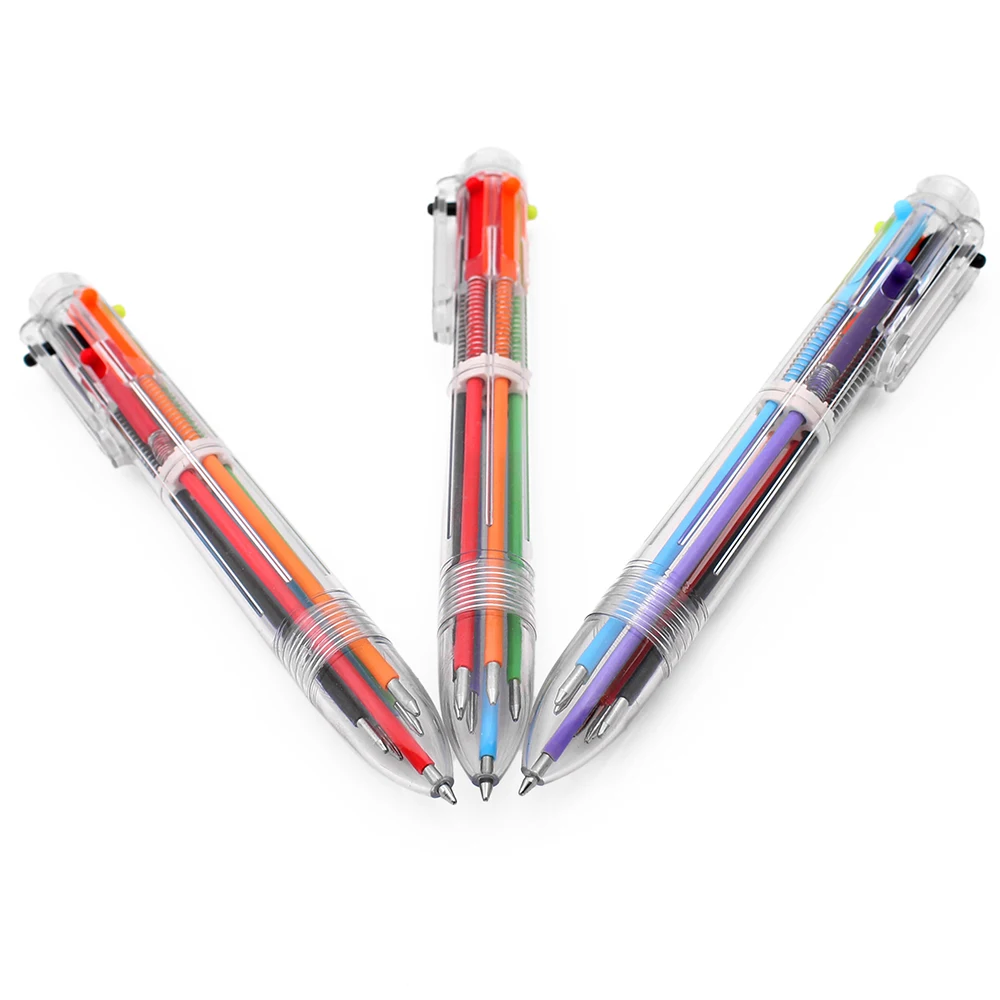 Hot Stationery Transparent Retractable 6 Color Multicolor Pen With Press Colorful Writing for Creative Kids Ball Ballpoint