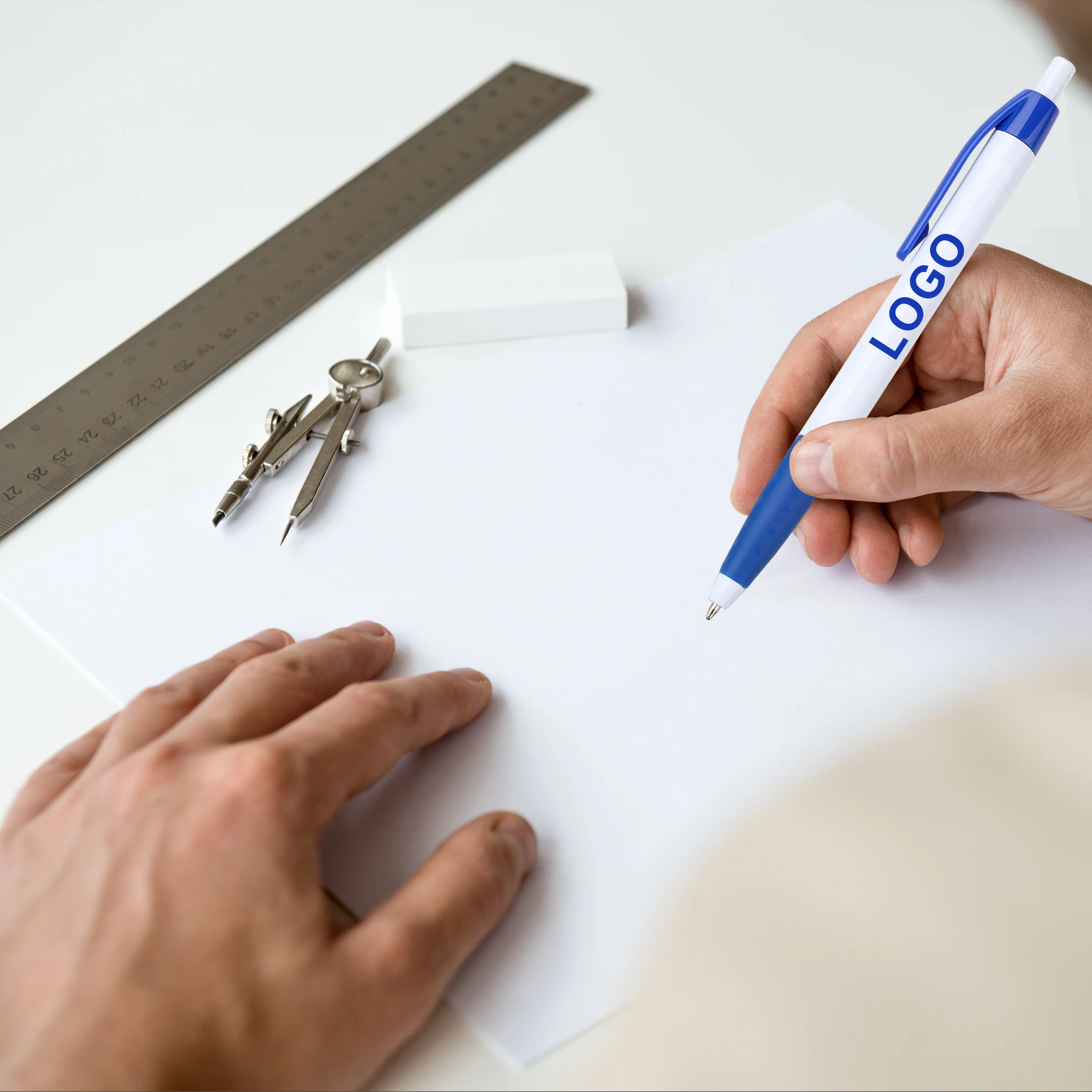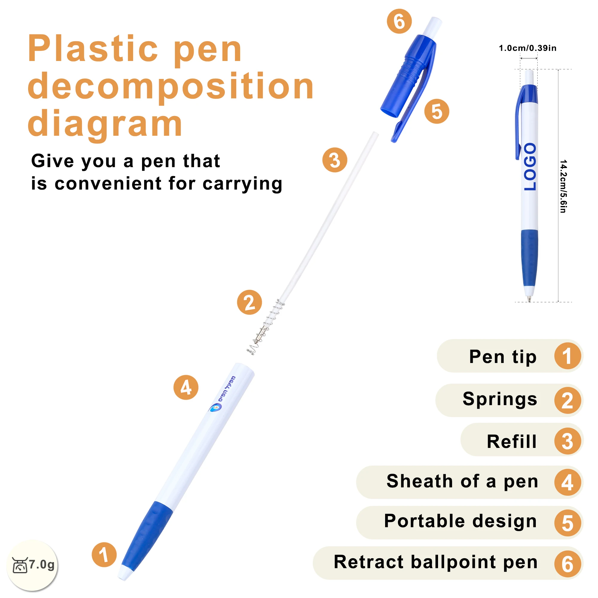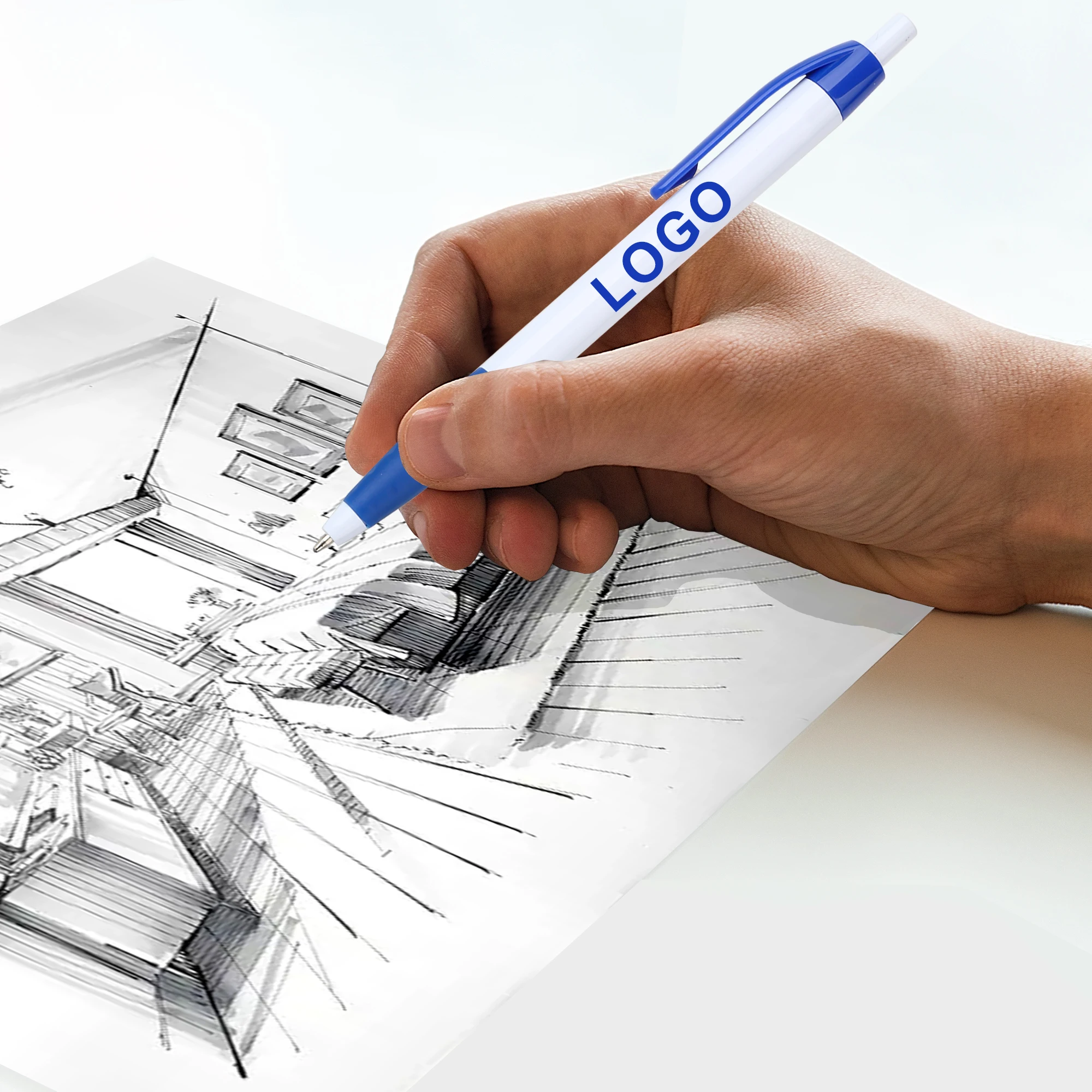 Wholesale ABS Plastic Ballpoint Pen With Customized Logo Printed Retractable Pressed Soft Grip Holder for School Office