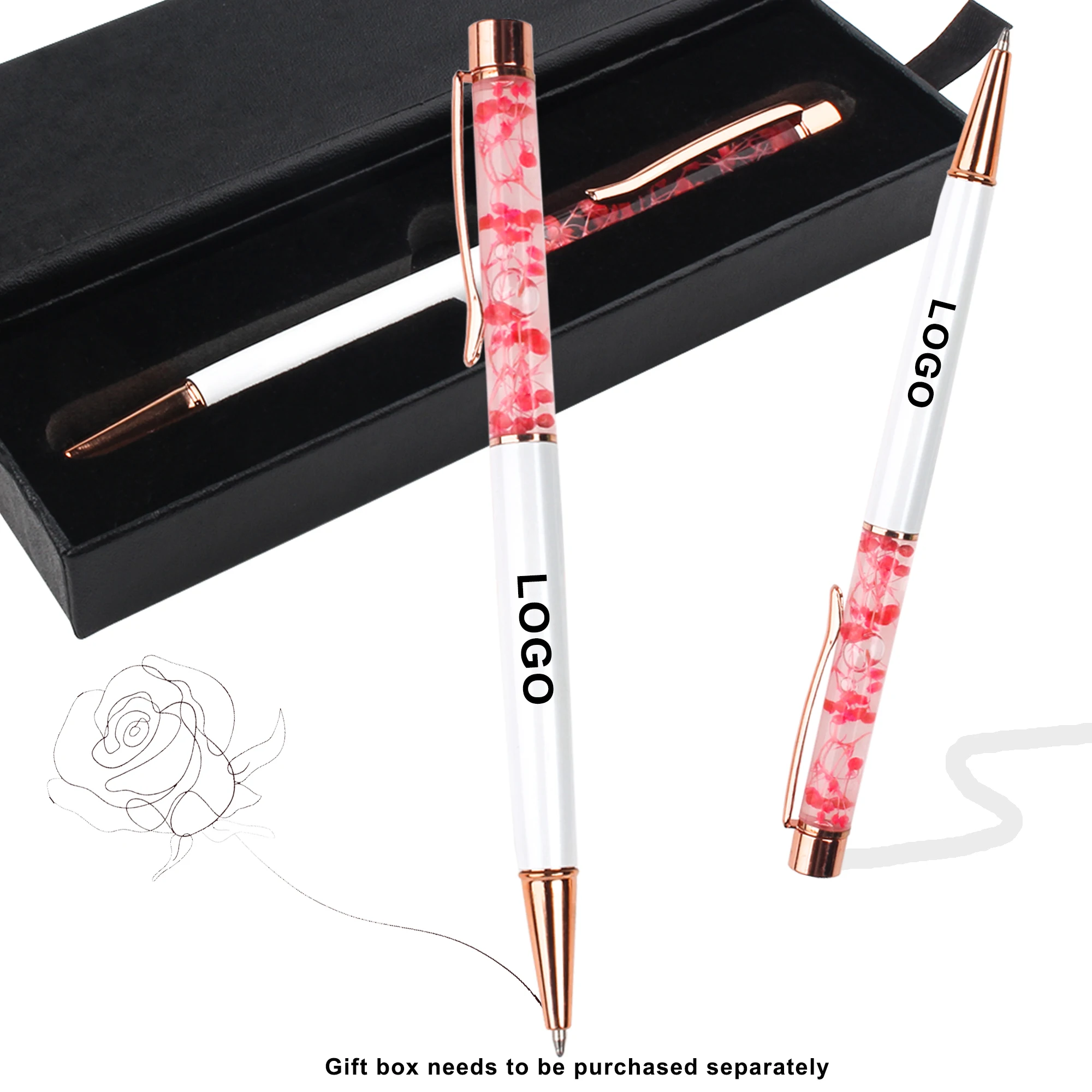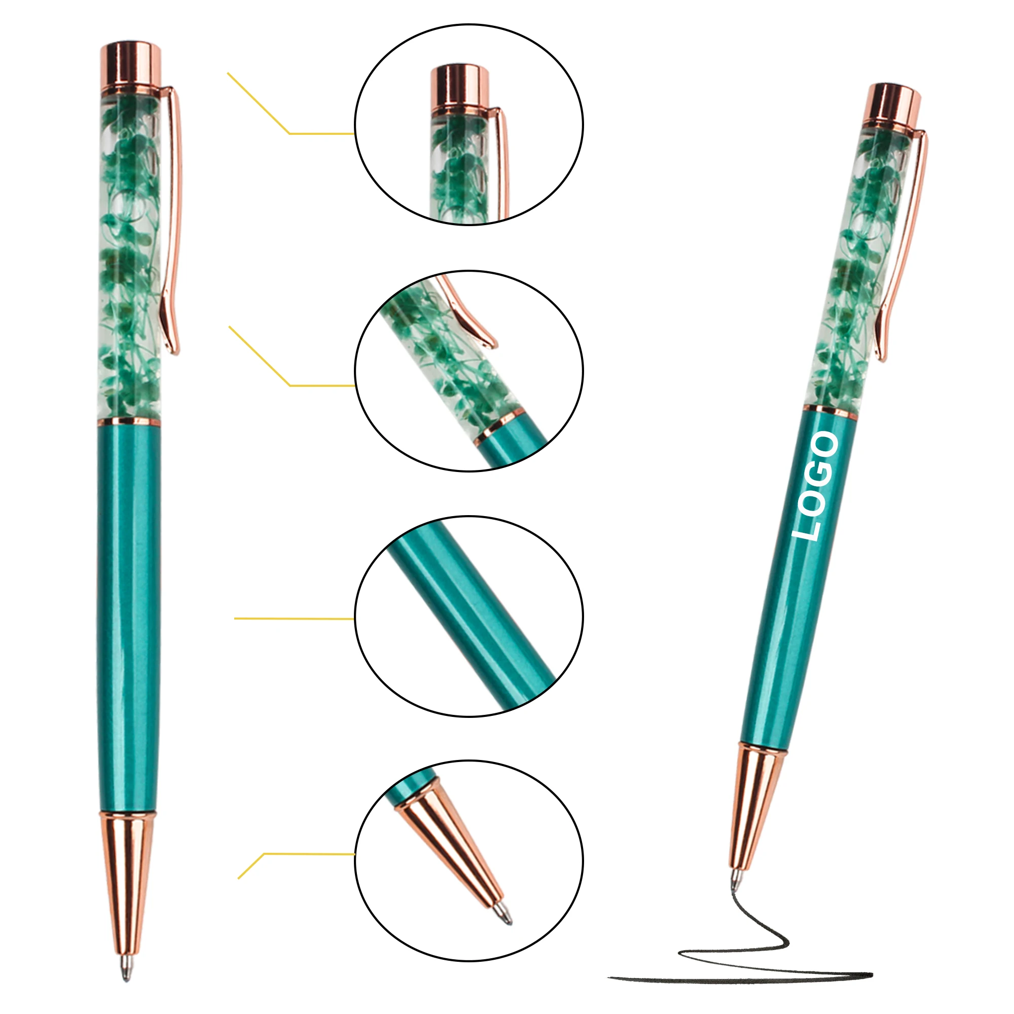 Wholesale Novel Creative DIY Oiled Dry Flower Metal Ballpoint Pen With Custom Logo Printed Laser Advertise for Office Stationery