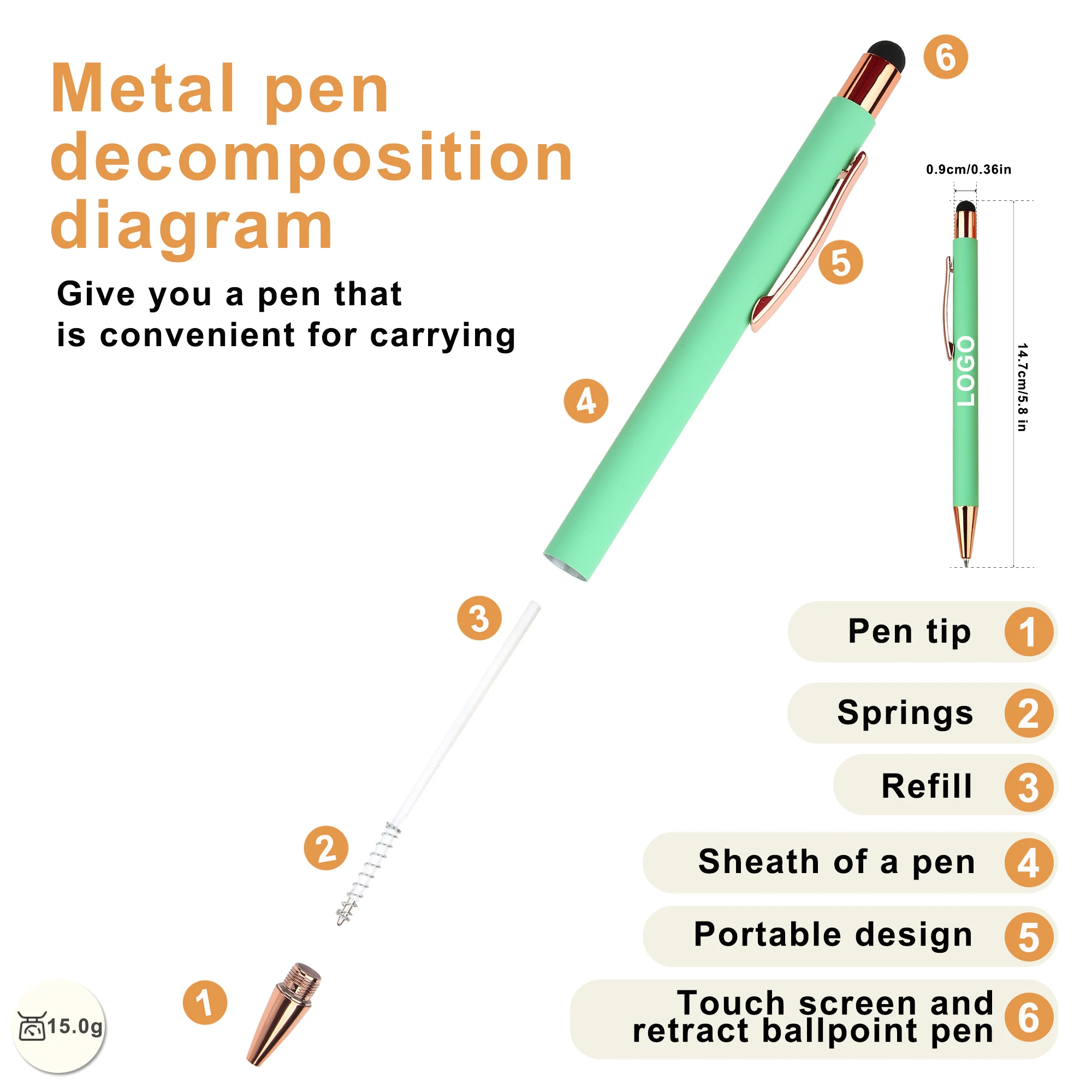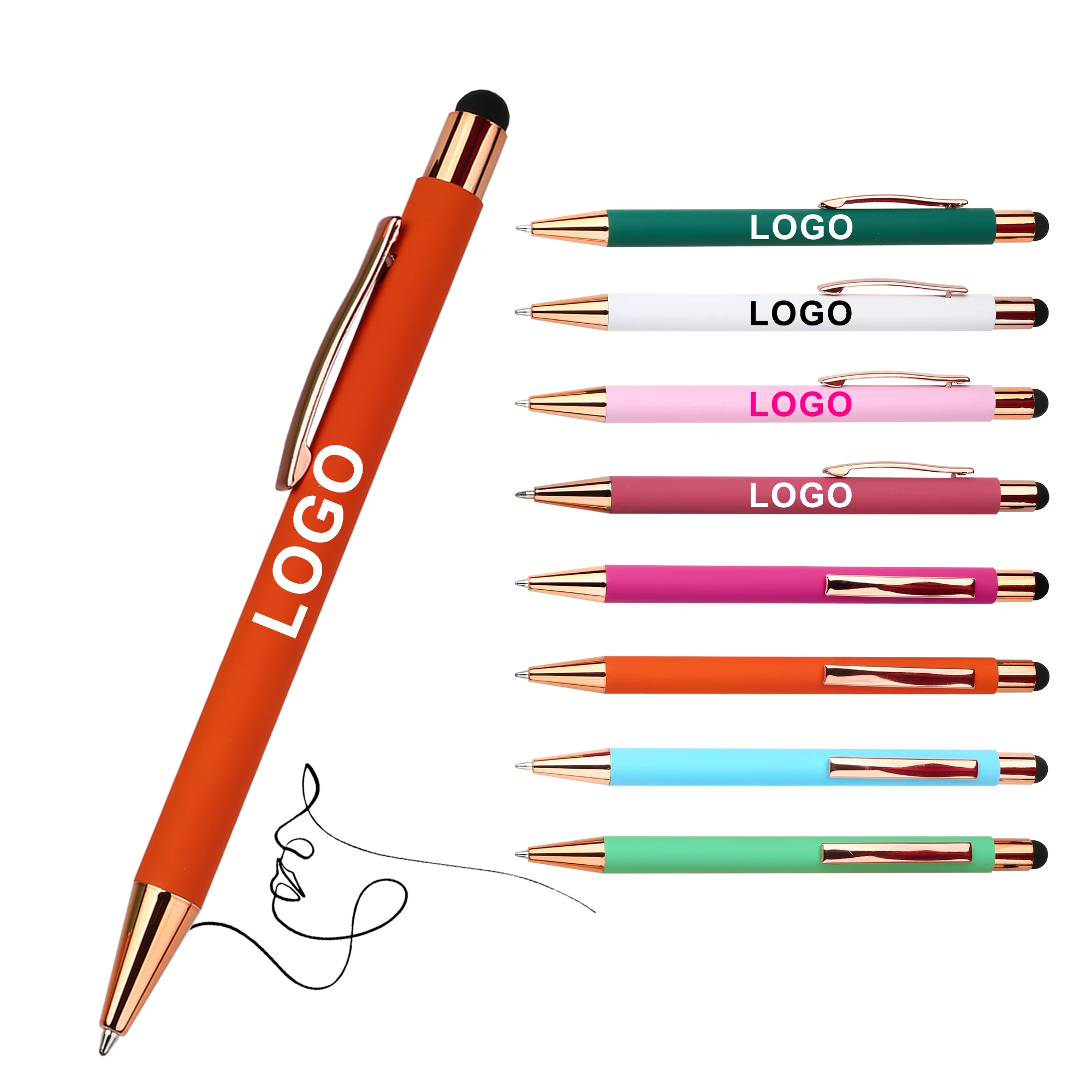 2-in-1 Screen Stylus Mobile Phone Metal Aluminum Ballpoint Pen Wholesale Customized Logo Personal Advertise for School Gifts
