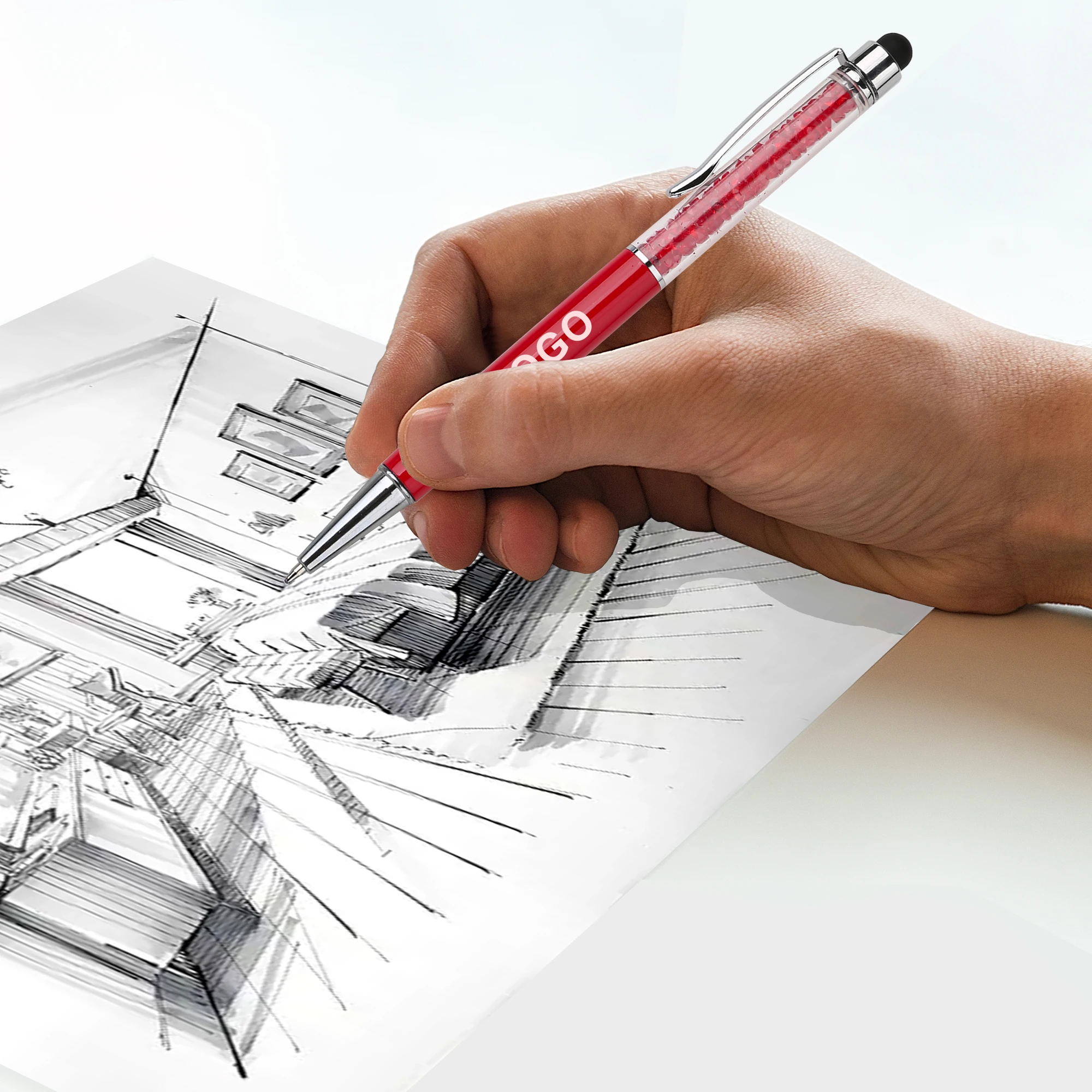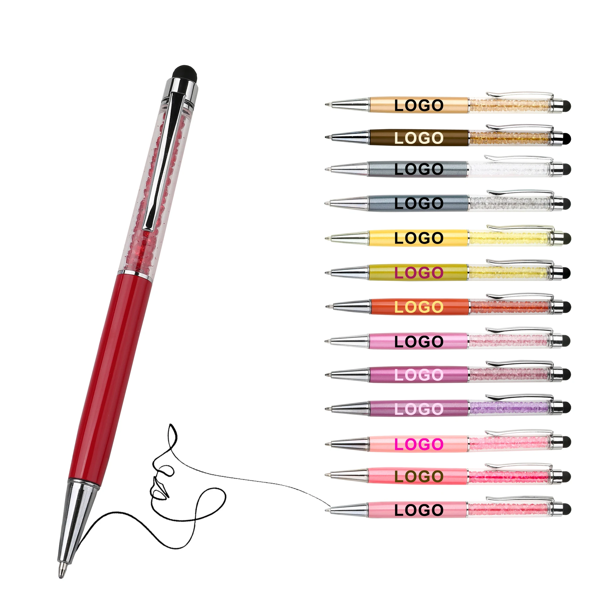 Wholesale 2 in 1 Stylus Broken Diamond Metal Ballpoint Pen With Customized Personalized Logo for Manufacture Stationery Mobile