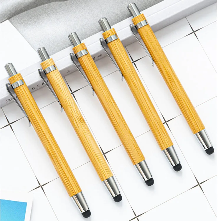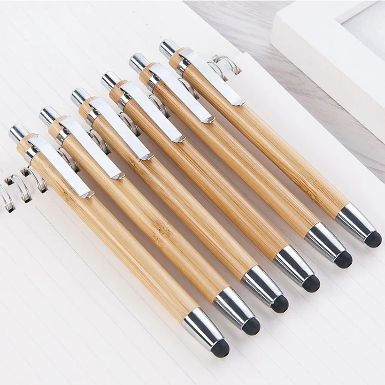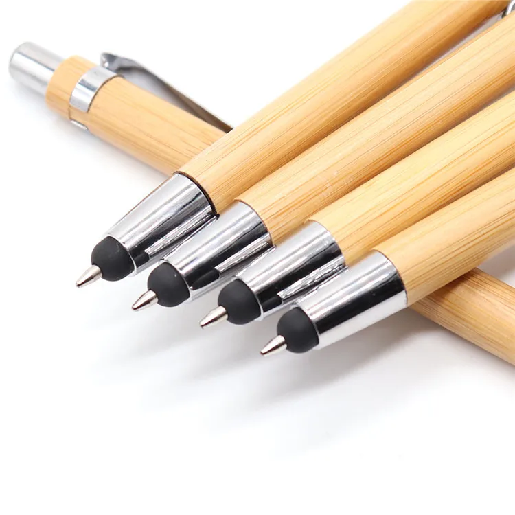 Promotion 2 in 1 Stylus Bamboo Ballpoint Pen With Personalized Custom Logo Advertisement or Business Gift