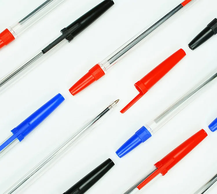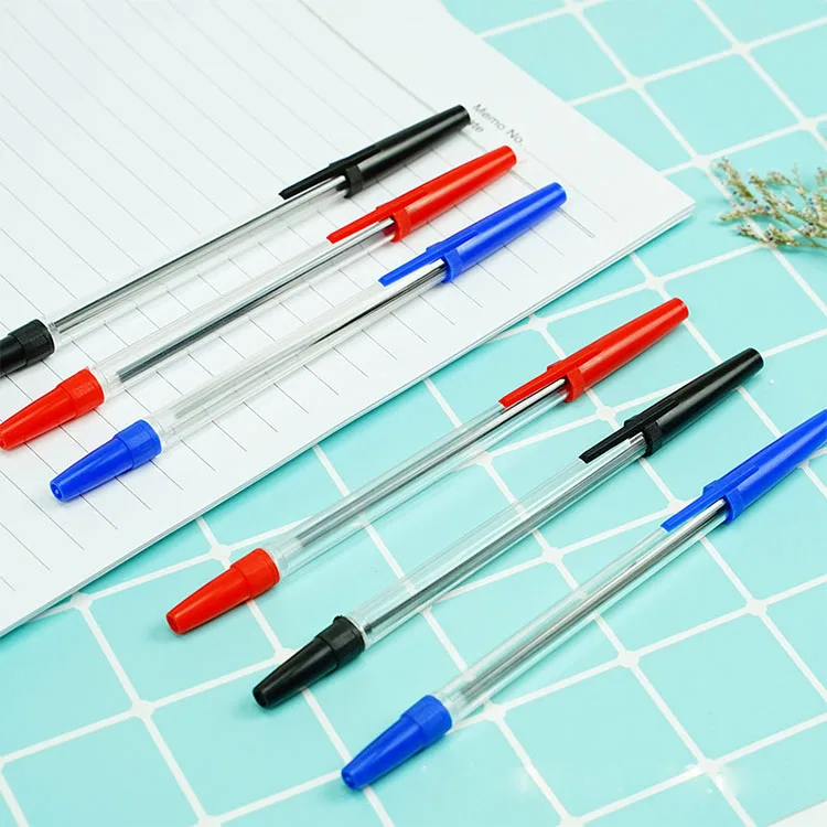 Promotion Transparent Rod Black Blue Plastic Ballpoint Pen With Customized Logo for Office Signature