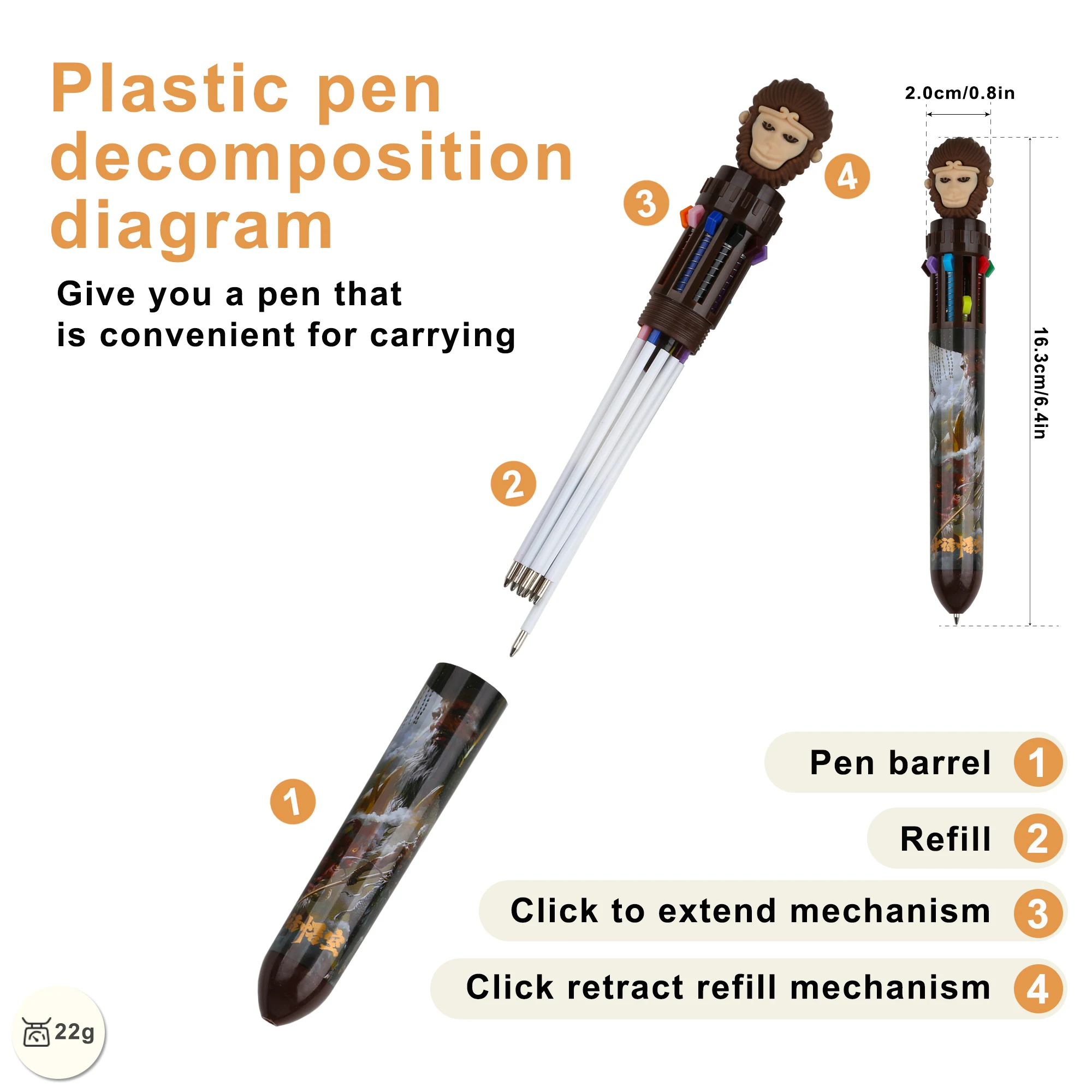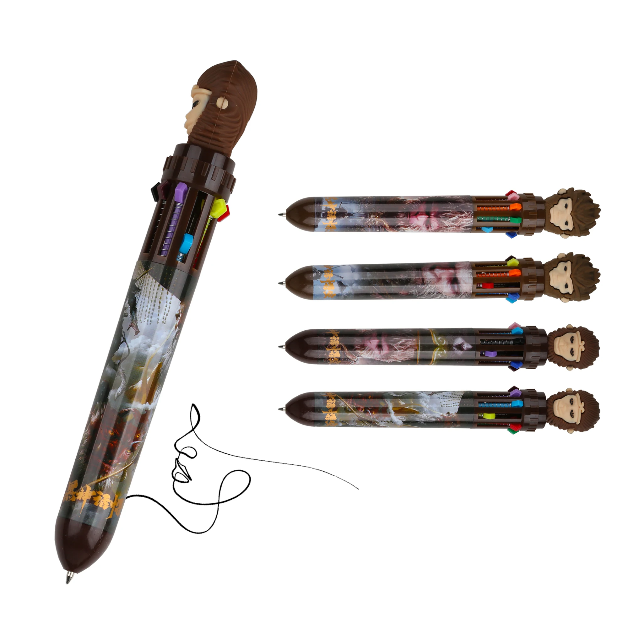 Newest 10 Colors Hot Selling Promotional Plastic Kawaii Wukong Cute Multicolor Pen for Stationery Manufacturer