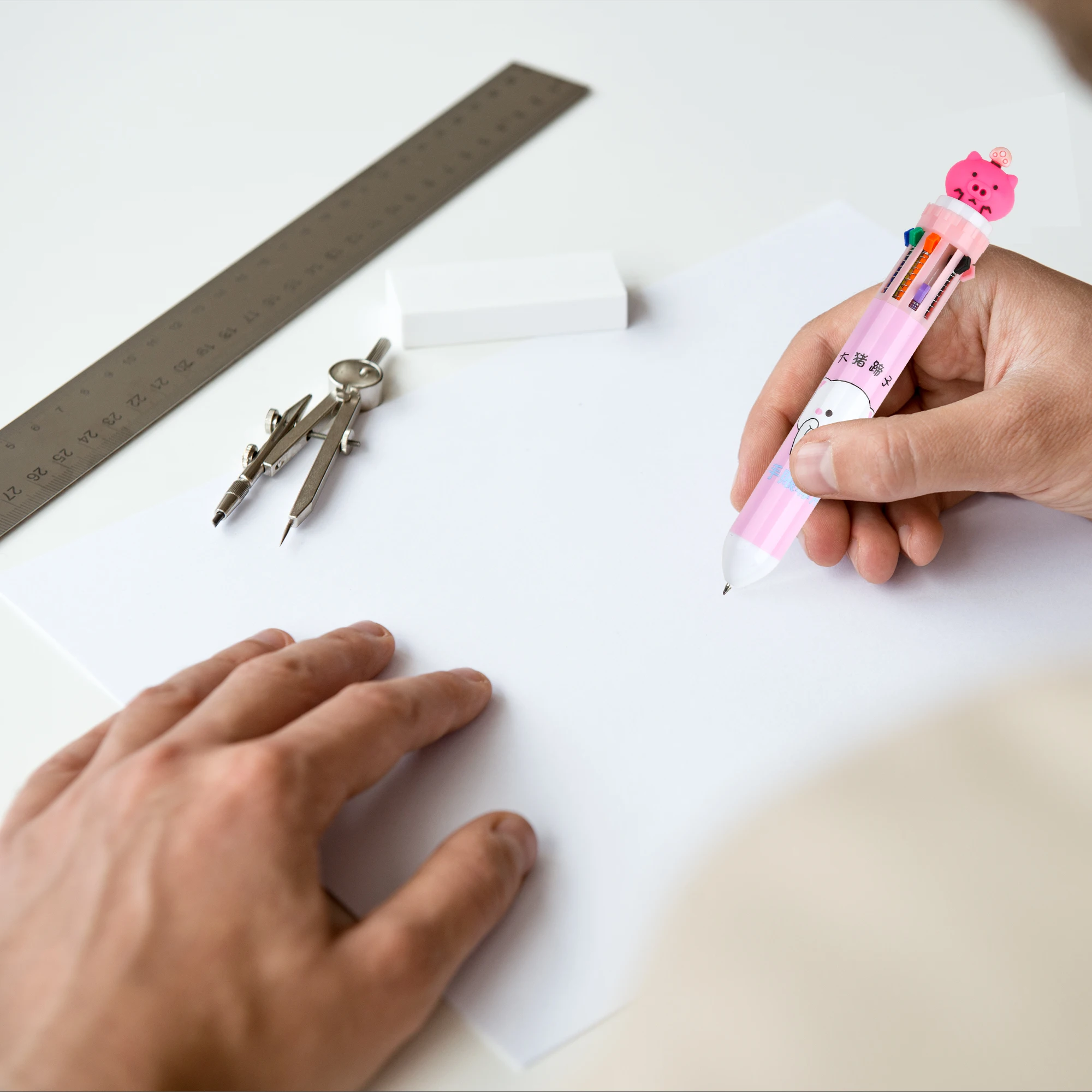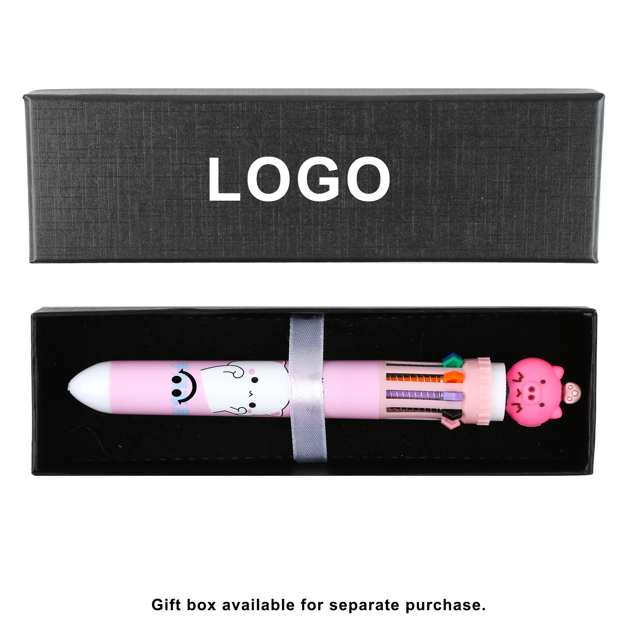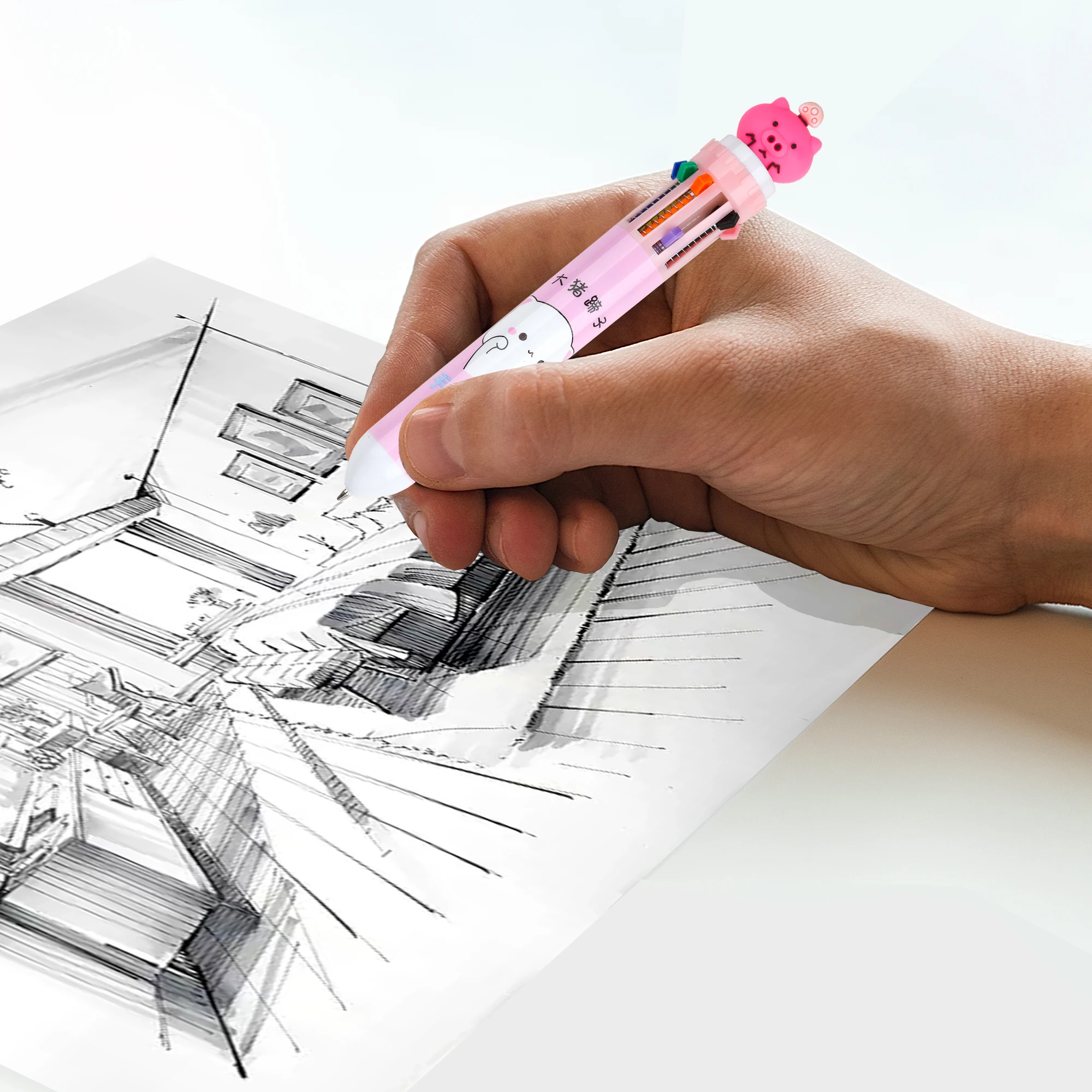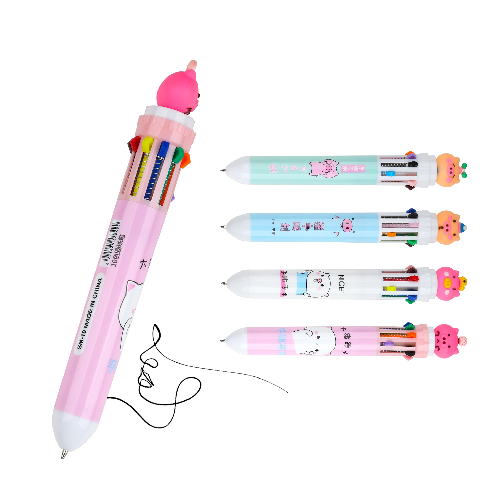 Wholesale Cheap Cute 10 in 1 Multicolor Retractable Plastic Ballpoint Pen with Cartoon for Student
