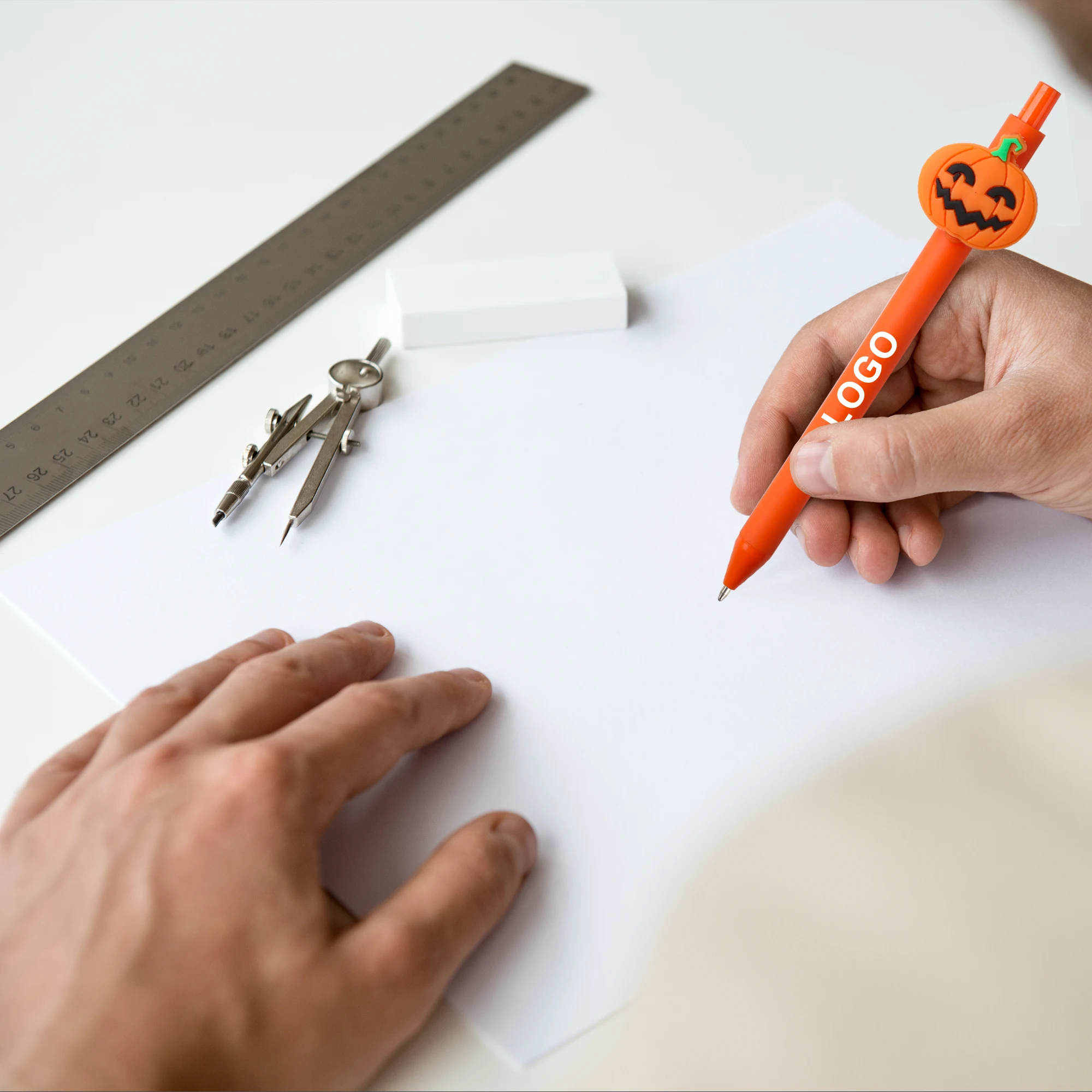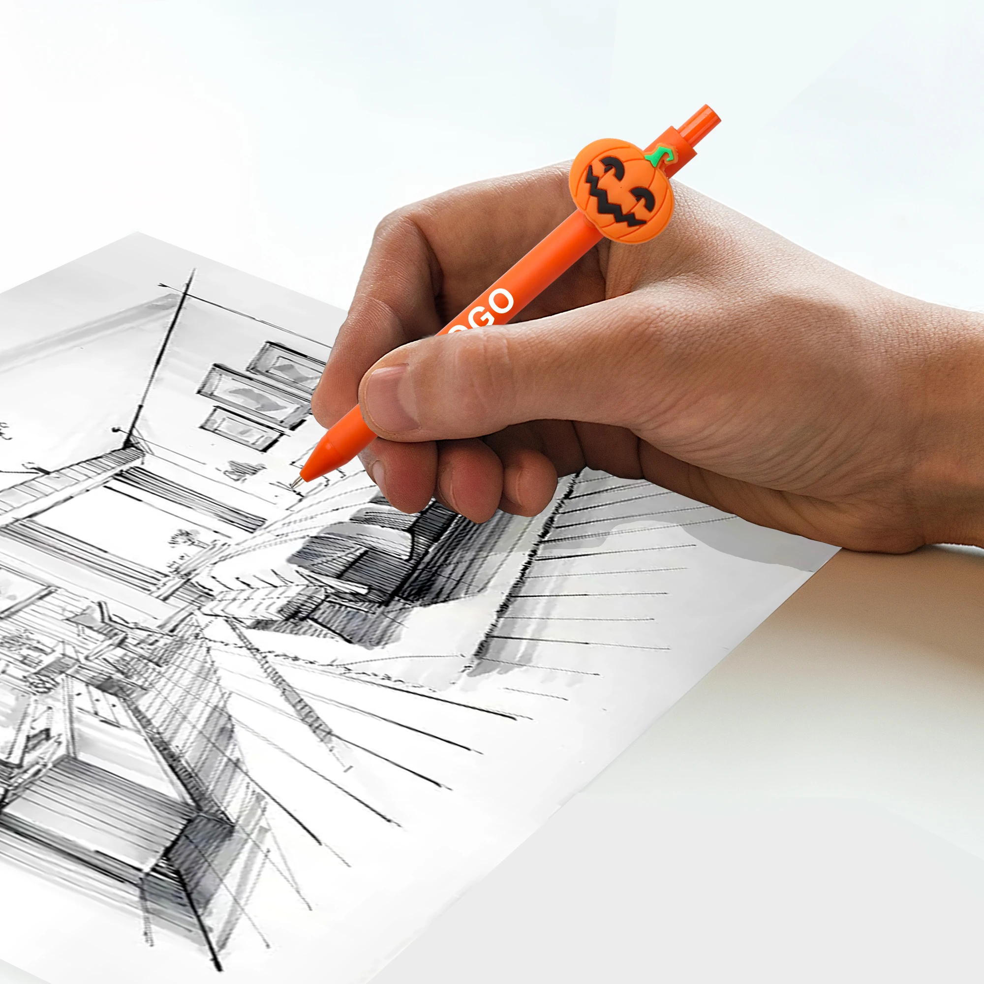 Halloween Stationery Supplies Classic Pumpkin Ghost Design Soft PVC Patches Ballpoint Pens with Custom Logo for Students Gifts