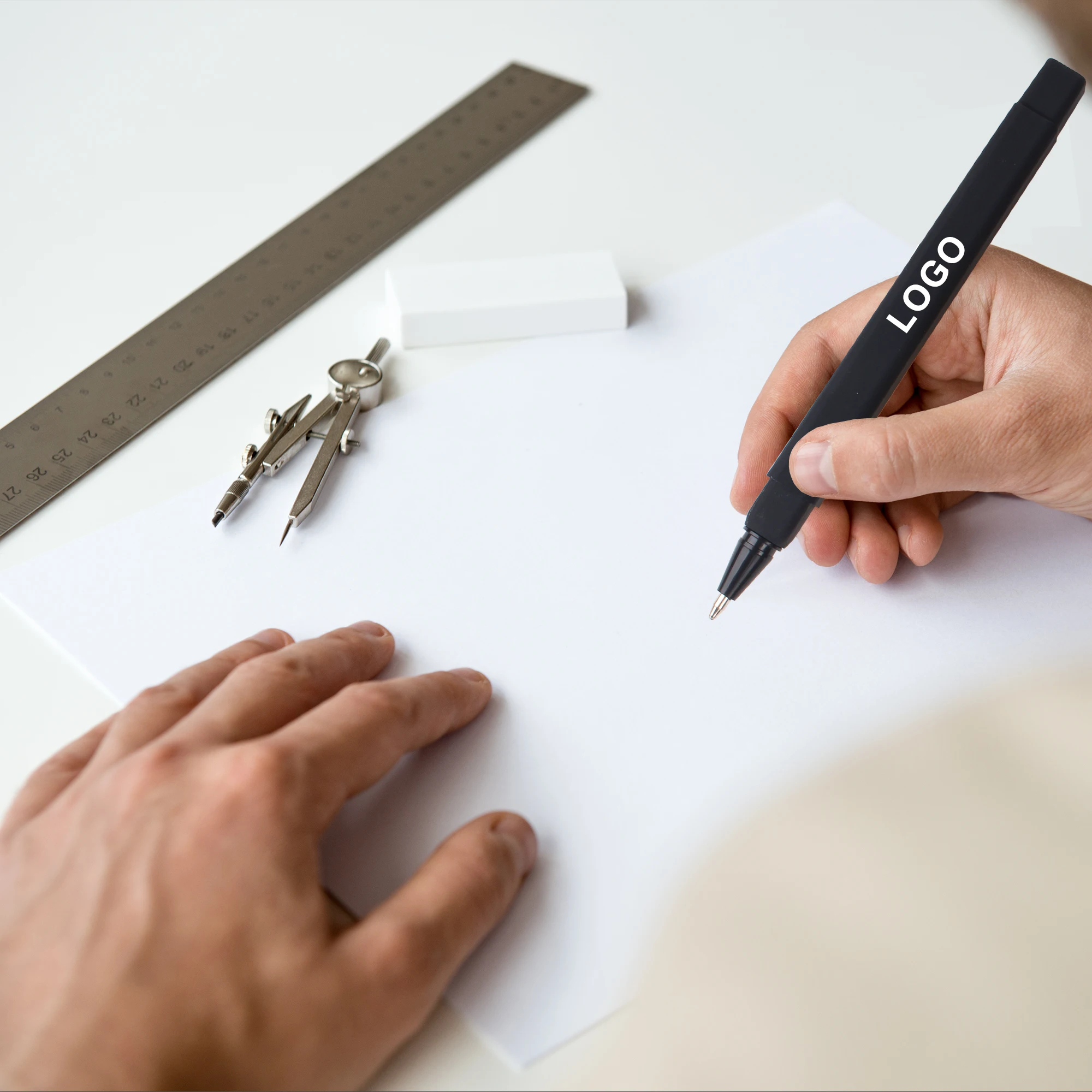 Promotion Custom Branded Plastic Rubber Coated Click Hotel Cheap Square Ball Pen with Print Logo Advertising Gift 1.0mm Writing