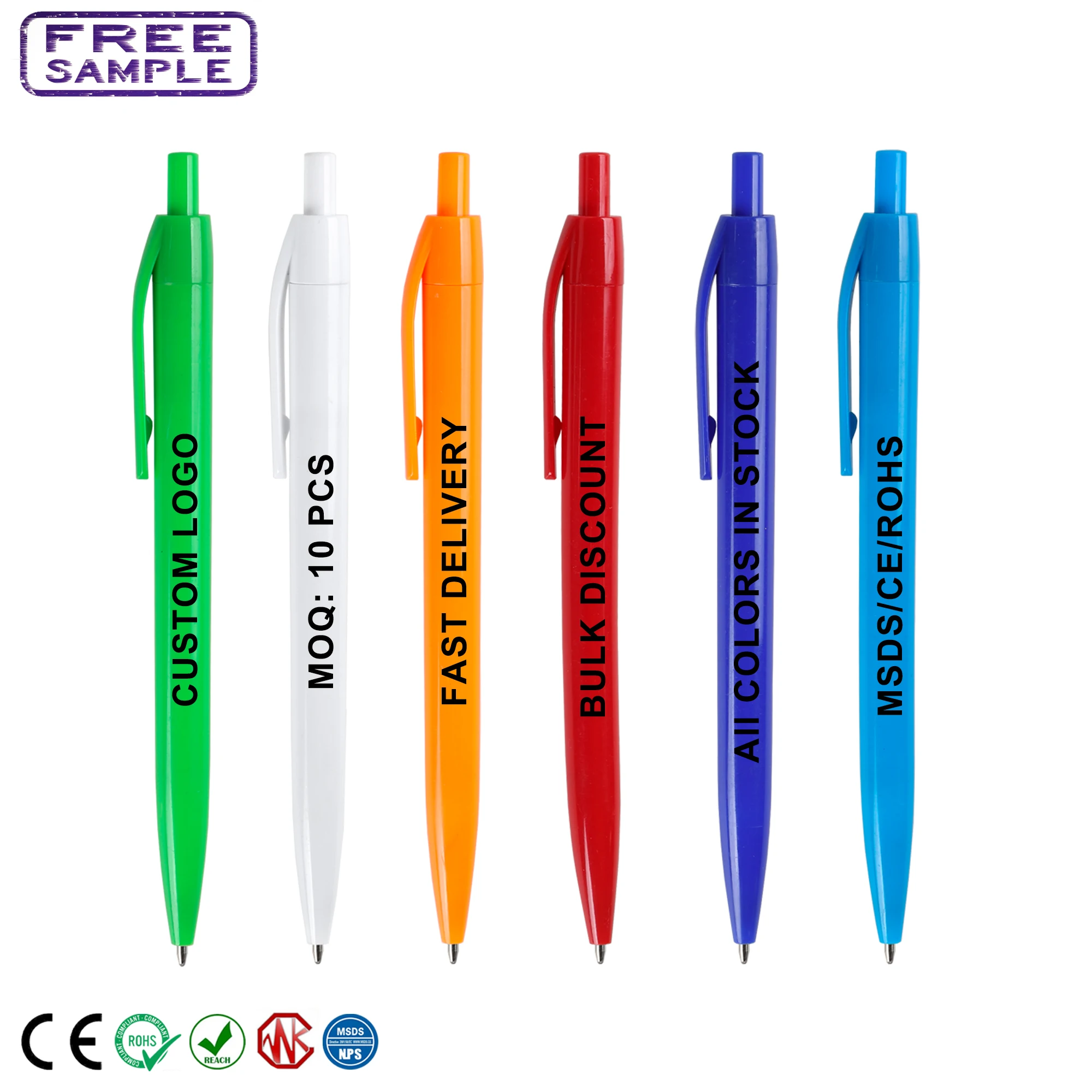Wholesale High Quality Cheap Plastic Ballpoint Pen with Customized Logo1.0mm Writing Width for Office School and Promotion