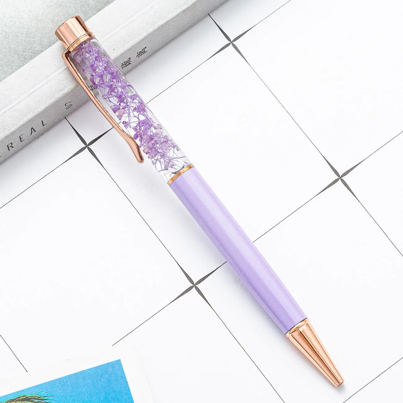 Wholesale Luxury Oil-Impregnated Dry Flower Metal Pen for Advertising Custom Logo Promotional Ballpoint Pens for Branding Gifts