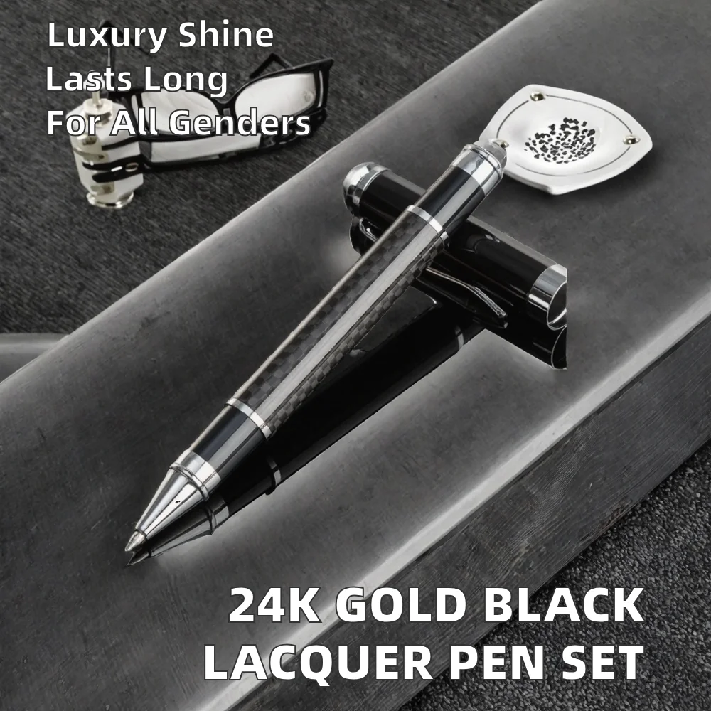 Luxury 24K Gold Finish Black Lacquer Ballpoint Pen 1.0mm Metal Gel Pen Sports Logo Gift Set for Men & Women