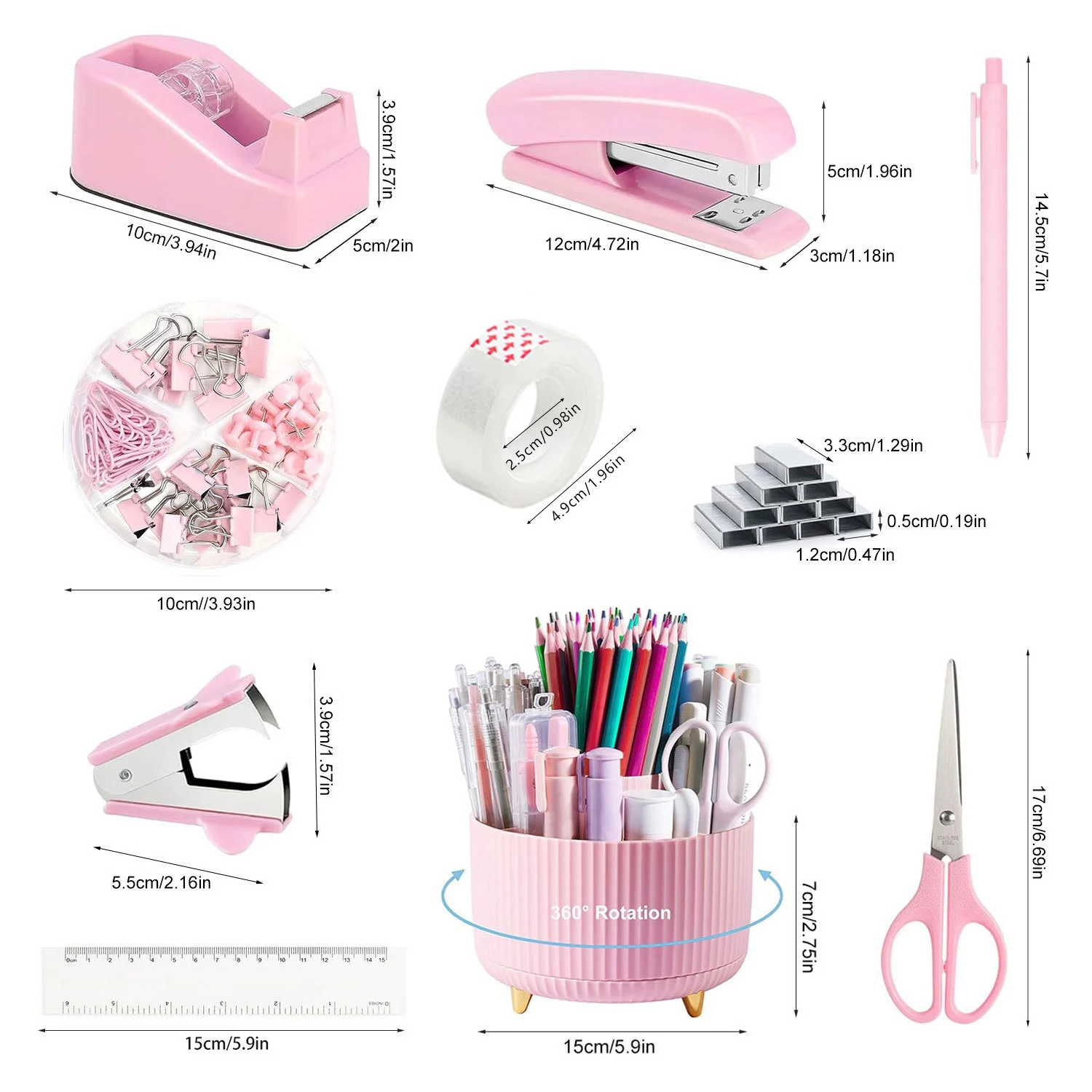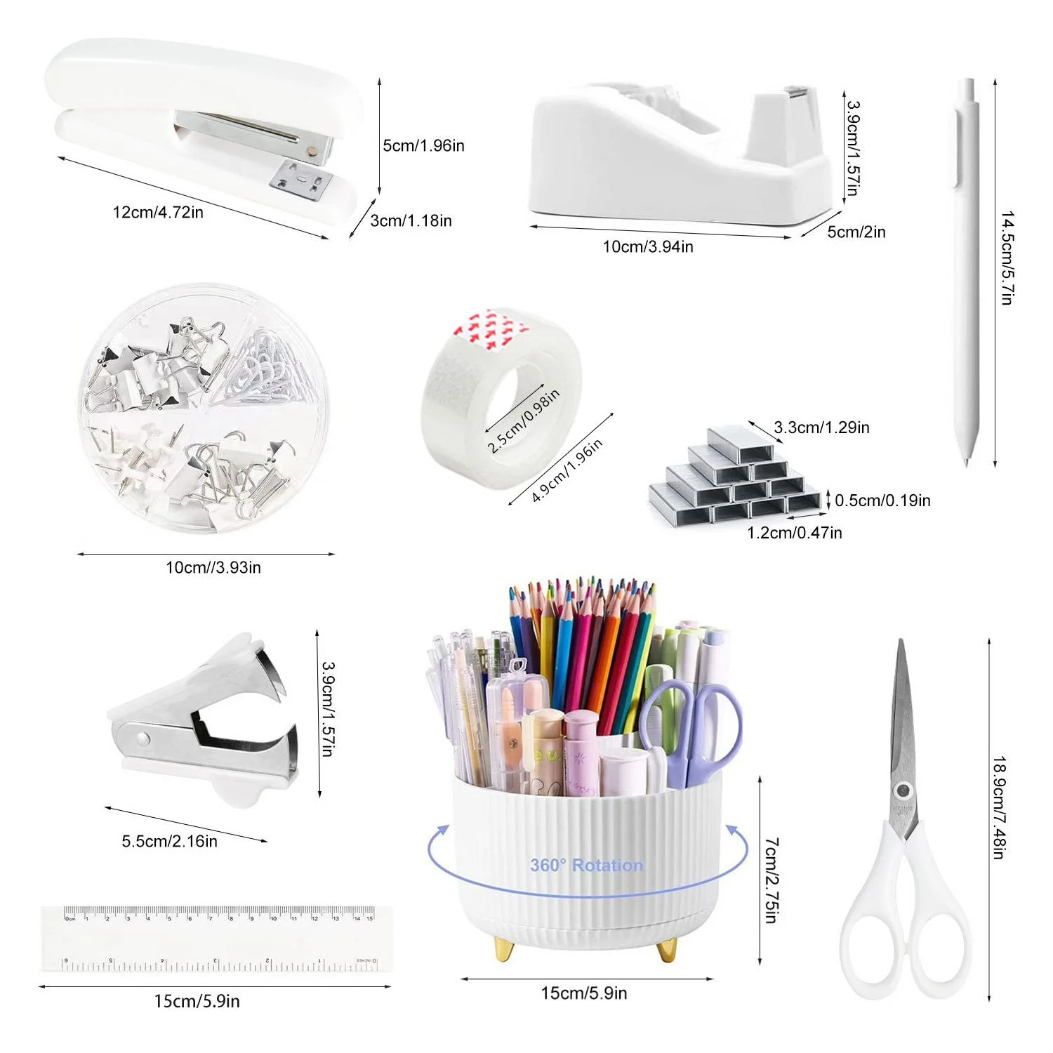 Hot Selling Desktop Office Stapler Tape Holder Scissors Staple Remover Direct Manufacturer Stationery Set