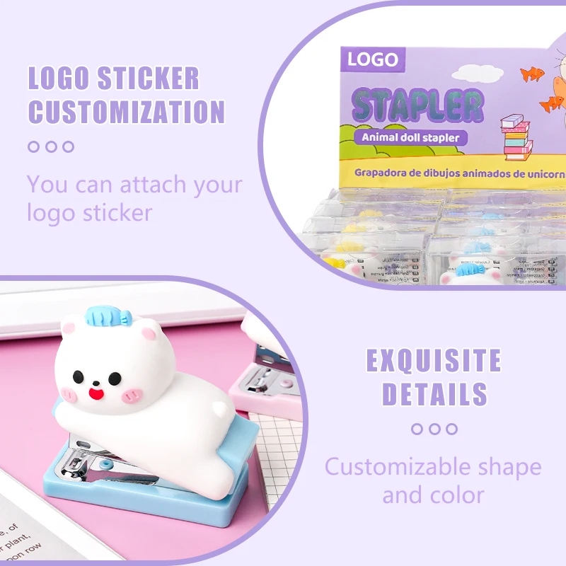 Accept Custom Cute Cat Shape High Quality Mini Cute Cartoon Stapler Student Office School Stationery Stapler
