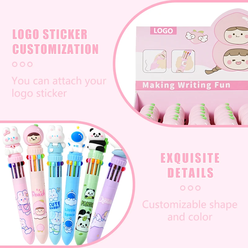Custom Pattern Creative 10 Colors 0.7mm Sweet Gril Plastic Ball Point Pen Beautiful Writing Sign Pen for Office School