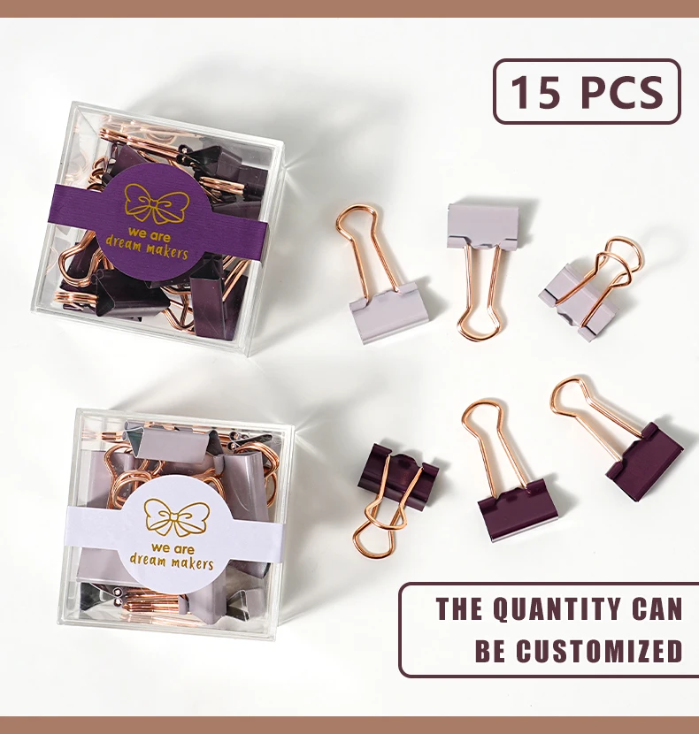 Factory Price OEM ODM Binder Clips Small Paper Clamps for Office Supplies 19mm Fancy Metal Binder Clips Paper Clips
