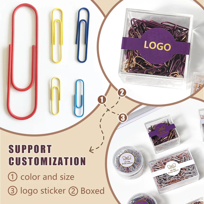 Wholesale DIY Sticker Stationery 28mm Round Shape Paper Clips Metal Desktop Binding Office Set Custom Design Strong Paper Clip
