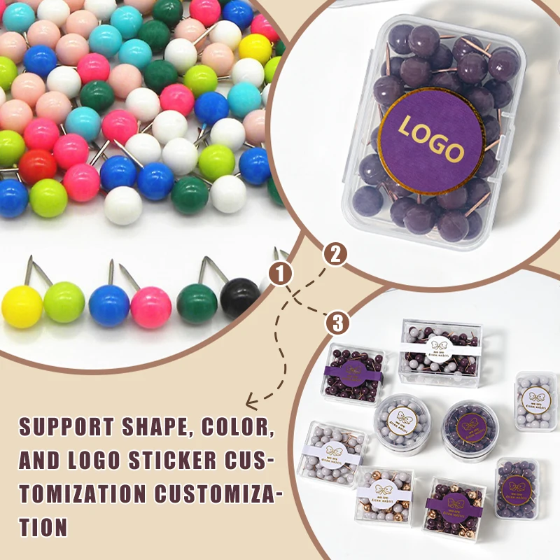 OEM ODM Customization Rose Gold Electroplating Transparent Box Push Pin Pushpin File Fixed Stationery Earth Nail