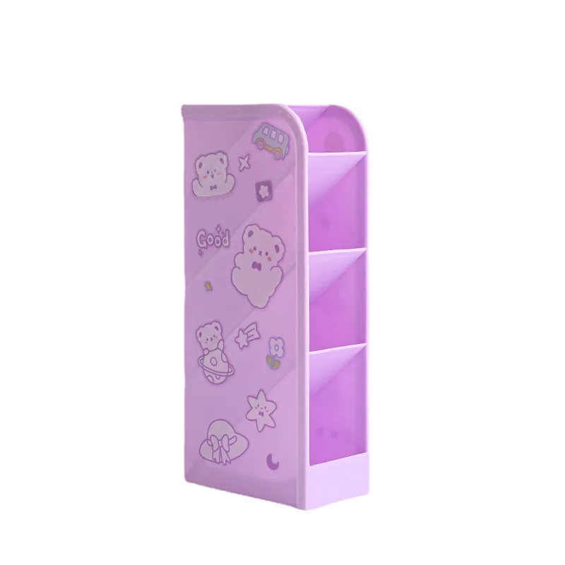 Factory OEM Cartoon Cute Large Capacity Pen Holder with Custom Logo Four-grid Pen Holder Desk Stationery