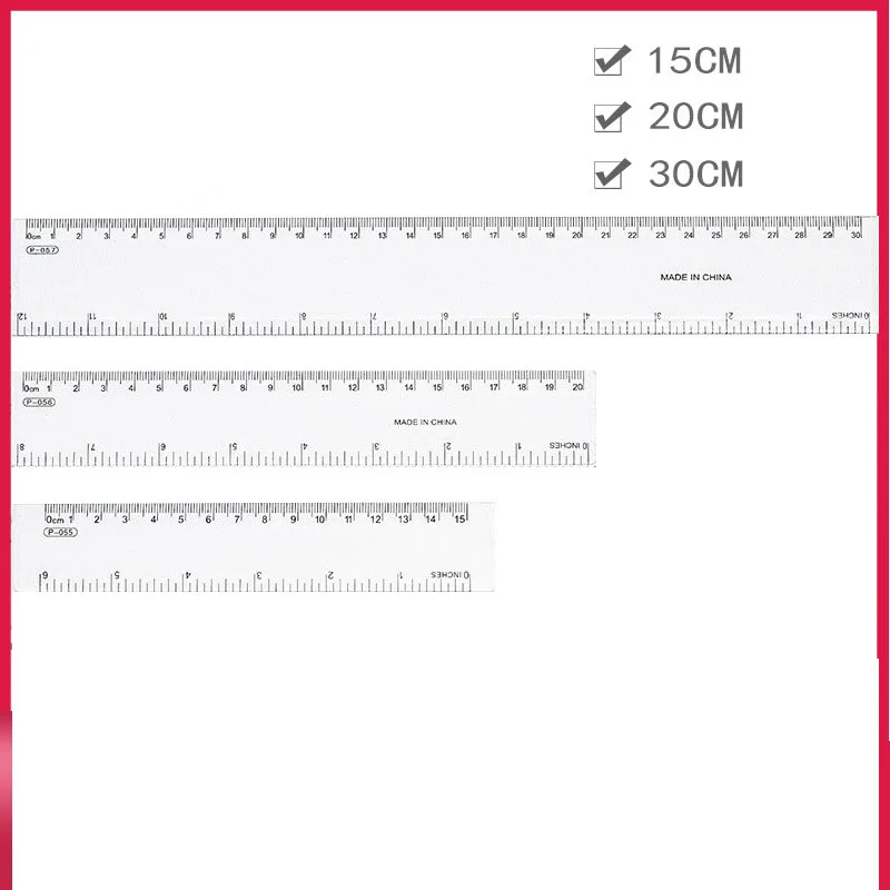 High Quality 15/20/30cm Transparent Plastic Ruler School Measuring Straight Ruler Stationery With Custom Logo