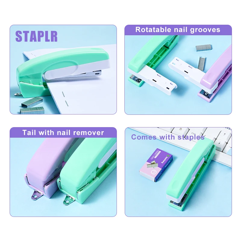 Macaron-colored Stapler Fresh and Effortless Stapler Multi-functional Rotary Stapler for Student Office Use and Binding