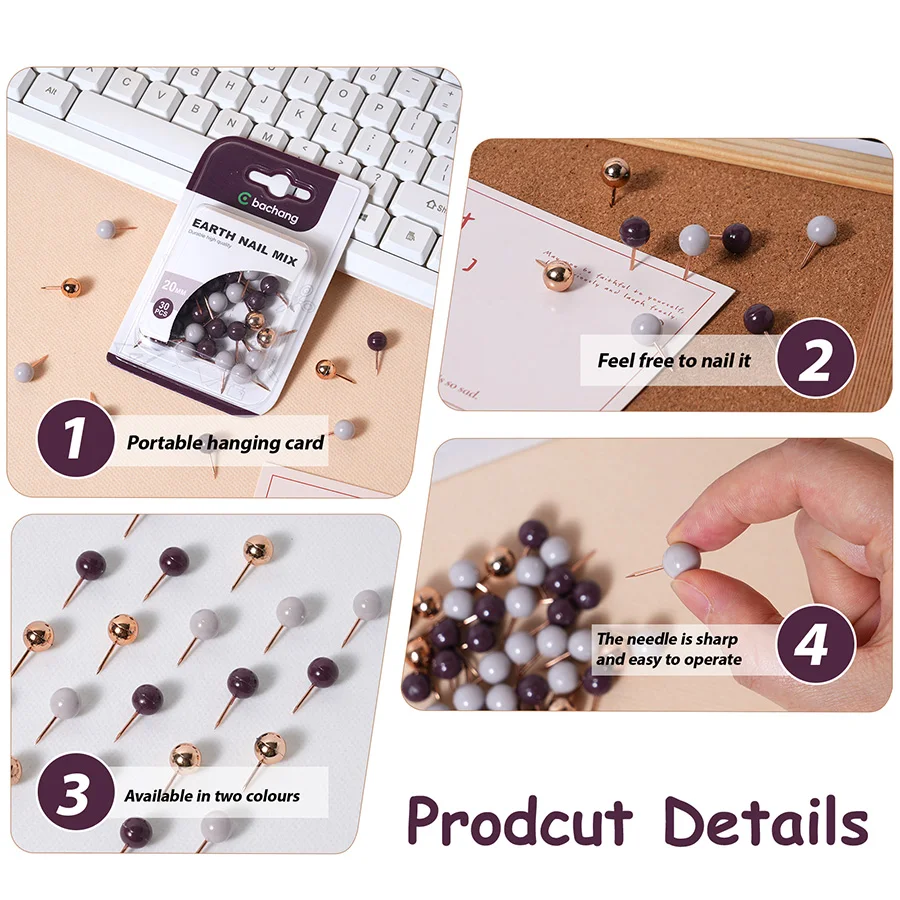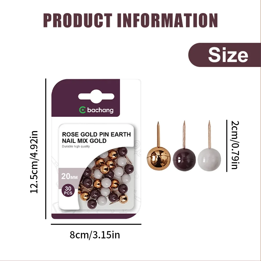 10mm Rose Gold Map Push Pins Round Ball Head Map Tacks Decorative Drawing Paper Thumb Tack for School Office