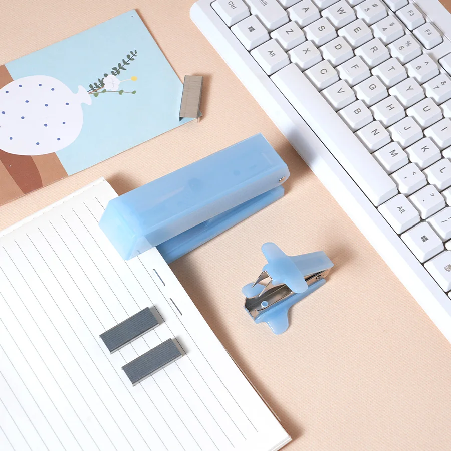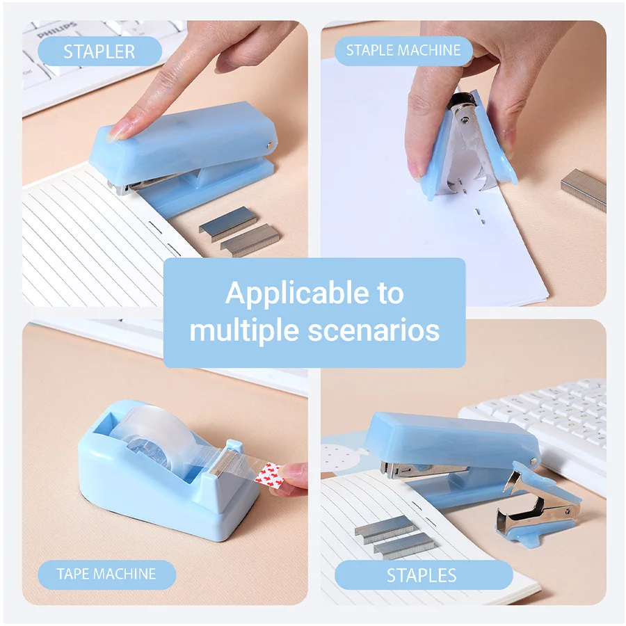 Blue Office Supply Accessories Set With Stapler Set Tape Dispenser Tabs Staple Remover