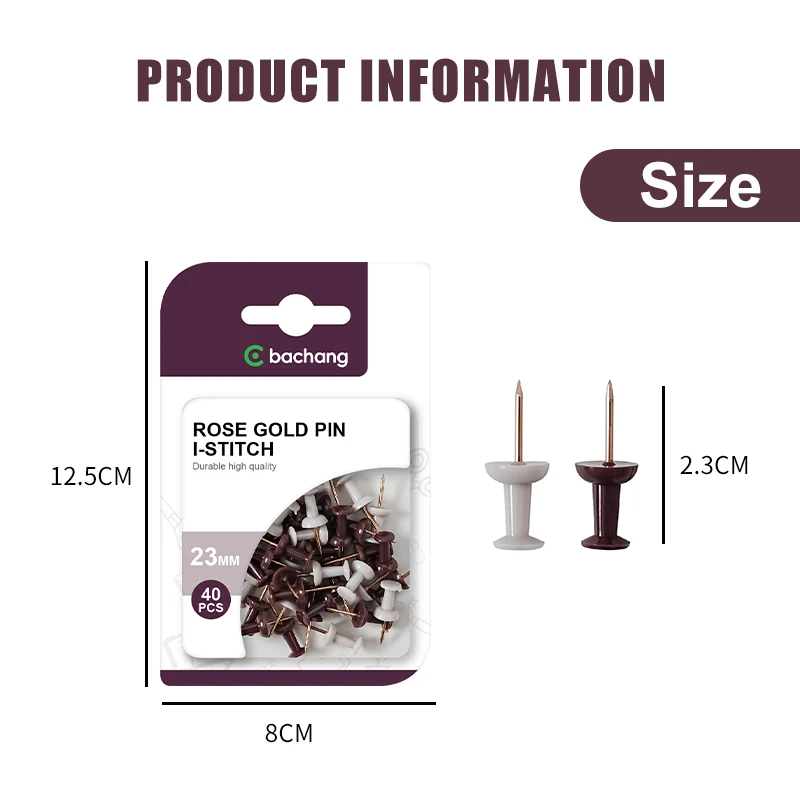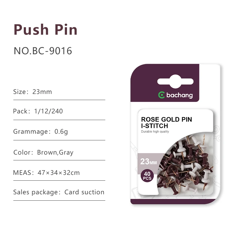 Student Office Supplies I-Shape Nail Rose Gold Electroplating Transparent Push Pin Fixed Stationery Push Pins Metal Material